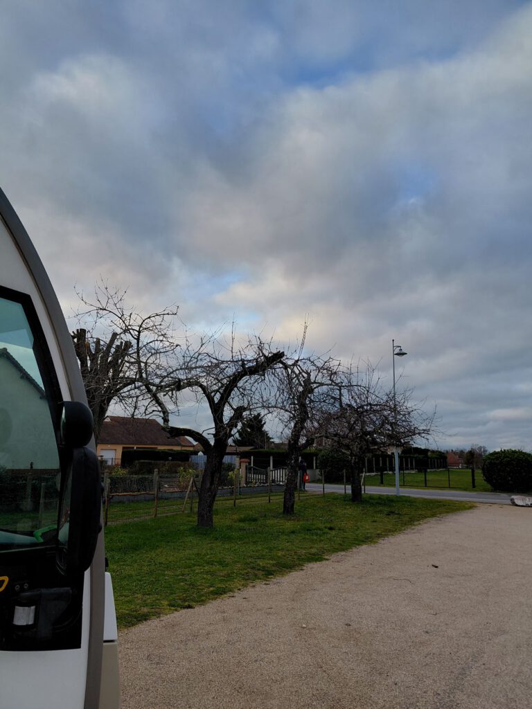 Vanmorgen weer lekker op tijd vertrokken. Na drie kilometer rijden we Frankrijk al in. De eerste twee uur schiet het niet op, veel bochten en heel erg veel rotondes. Dat krijg je als je op je navigatie tolwegen vermijden instelt. Dat wisten we natuurlijk van te voren. Op zich hebben we ook geen haast want als we eind volgende week thuis zijn is het ook prima. We gaan er vanuit dat het vanaf nu in ieder geval wel een keer is gedaan met de storm. Dat klopt ook gelukkig, het eerste uur is de wind nog heftig maar dan neemt het gelukkig af en hebben we er de rest van de dag geen last meer van. Als we eenmaal op de A75 zitten dan kunnen we kilometers maken. De tol bij Millau nemen we voor lief anders moeten we wel heel ver omrijden, dat hebben we al wel eens gedaan en dat was leuk en zeker de moeite waard voor een keer maar het schoot voor geen meter op, dat doen we dus niet meer. Zo ongeveer om de twee uur wisselen we van plaats zodat we allebei kunnen genieten van de omgeving. Ik heb een camperplaats uitgezocht in Saint-Pourçain-sur-Sioule volgens de reviews een leuk plaatsje met de camperplaats midden in het centrum. Helaas als we daar aankomen is het kermis in de stad en is de camperplaats afgesloten. Jammer dan maar een stukje verderop. We komen terecht in het piepkleine Monétay-sur-Allier zo’n negen kilometer verderop, ook een leuk plaatsje maar er is geen bal te beleven. Na aankomst maken we een rondje door het dorp om even de benen te strekken. We zien zowaar wel een aantal mensen, die gaan allemaal (lees alle vijf!) naar de kerk waar de dienst bijna begint. We hebben er vandaag bijna 600 kilometer opzitten, best veel voor ons doen maar dat komt vooral door de vele snelweg kilometers op A75. Nog 850 kilometer te gaan tot thuis.