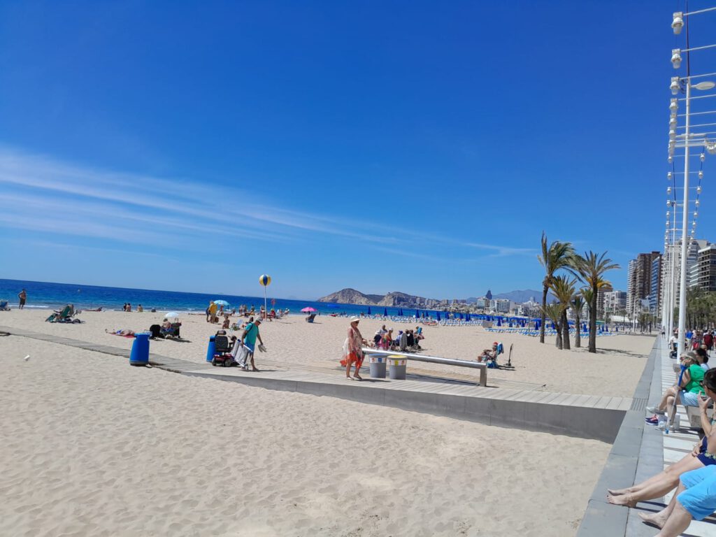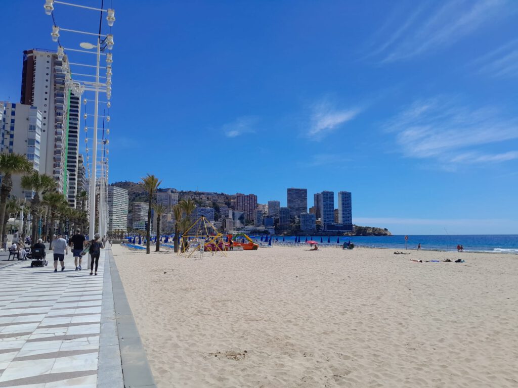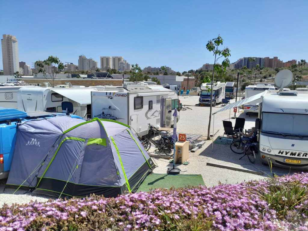 Na twee nachten op camping Arena Blanca zijn we een paar kilometer verderop gereden naar naar camperplaats CamperLive Benidorm. Op de camping hadden ze een wel heel streng beleid voor honden. De honden mogen onder geen voorwaarde alleen in de de camper blijven. Op zich is dat natuurlijk een goede regel als het erg warm is ofzo maar dat is nu niet het geval. Wij willen graag naar de woensdagmarkt maar ten eerste is die een eind van de camping vandaan en ten tweede is het natuurlijk geen succes om met twee honden over een drukke markt te lopen. We gaan dus maar in twee groepjes, eerst André want die heeft natuurlijk andere interesses dan Anja en ik, daarna Anja en ik. Later blijkt dat André op een hele andere markt is geweest dan wij. Leuk is anders en we willen toch nog wel wat meer van de sfeer hier in Benidorm genieten maar niet apart natuurlijk, vandaar dat we na twee nachten (die hadden we bij aankomst al direct moeten betalen) zijn vertrokken naar de camperplaats in Finestrat. Finestrat is een dorp vlakbij Benidorm en op de fiets ben je net zo snel in het centrum als vanaf camping Arena Blanca. De camperplaats is redelijk nieuw en we krijgen een mooi plaatsje tegenover elkaar. Vanaf hier fietsen we langs de boulevard naar het gezellige centrum. Het is gezellig druk hier en op het strand staan nu heel veel strandbedjes, die waren er in januari niet. Vlak bij de camperplaats zijn veel winkels daar wandelen we ook nog even rond. Op vrijdagavond gaan we naar de wok, we zijn tenslotte in Spanje….. :-). Verder genieten we op CamperLive Benidorm heerlijk van het zonnetje en van de schone douches. Al met al hebben we hier een paar heerlijke ontspannen dagen, helaas maar weinig foto’s gemaakt. Morgen gaan we weer een stukje verder.