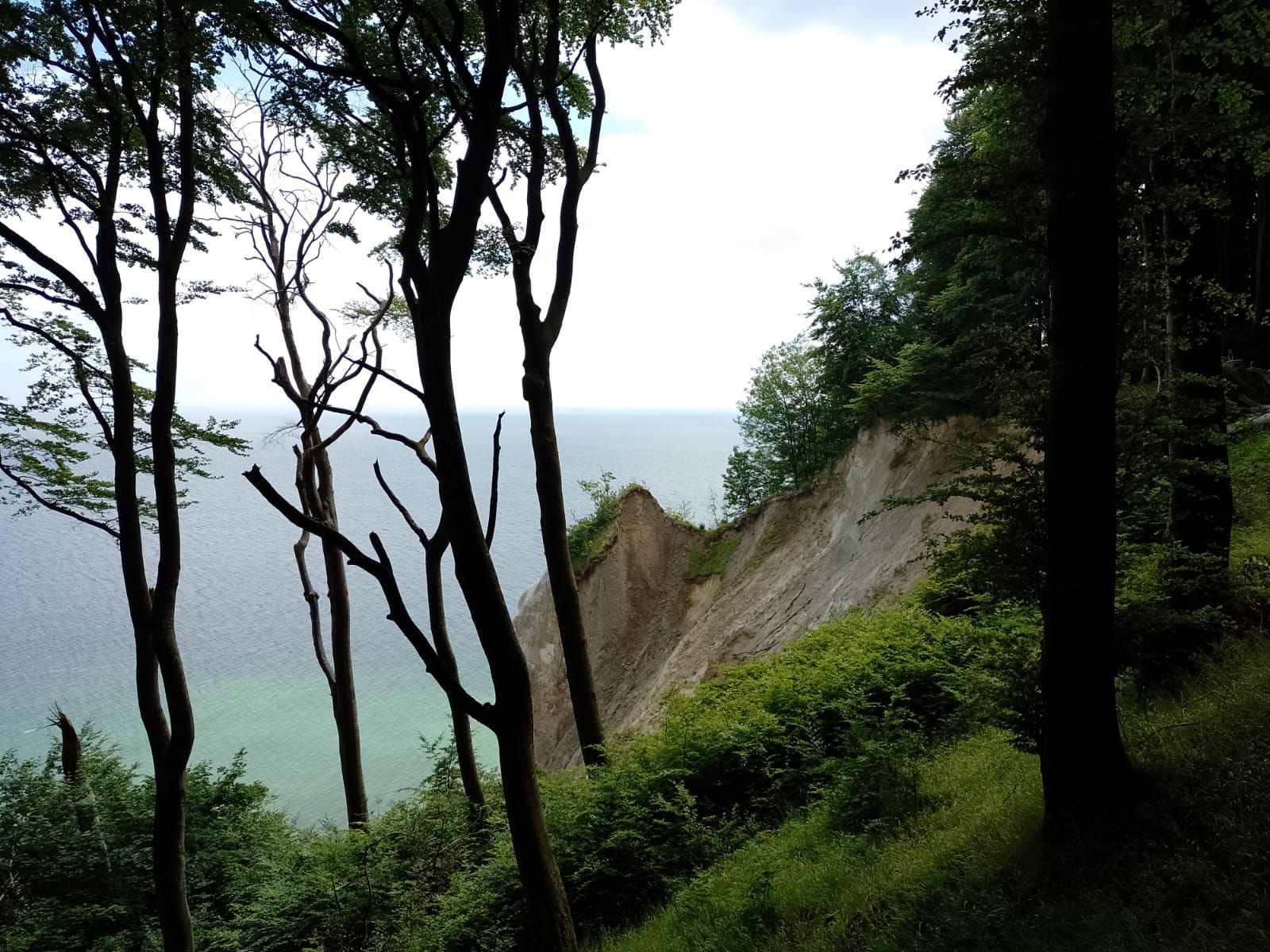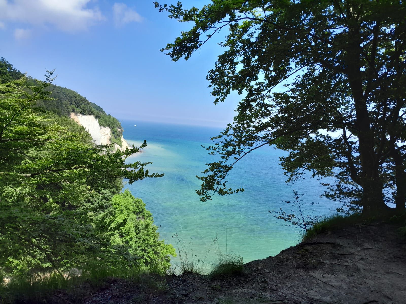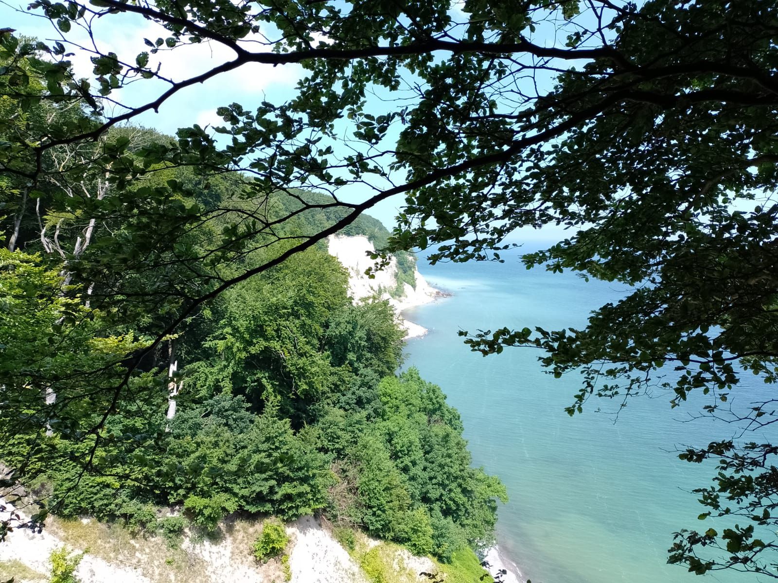 We zijn nog twee dagen hier op camping de Klomp op Rügen gebleven. Gisteren zijn we naar Asgard en Sassnitz gefietst, aan de noordkant van Sassnitz beginnen de krijtrotsen en die willen we graag zien. We hebben gelezen dat je ze het beste kunt bezichtigen met een boottocht of vanuit het nationalpark Jasmund. Wij zijn natuurlijk echte zuinige Nederlanders en zoeken een plekje waar we de rotsen kunnen bewonderen zonder dat we er voor hoeven te betalen en dat lukt 🙂. Verder valt Sassnitz een beetje tegen jammer genoeg. Ik had gelezen dat je op Rügen heel mooi kunt fietsen, dat valt in deze omgeving een beetje tegen. De natuur is mooi maar de fietspaden en richtingaanwijzers voor fietsen die zijn op z’n zachtst gezegd niet zo best. Soms stopt het fietspad ineens en mag je verder fietsen op de weg waar de auto’s met 100 km per uur langs je heen razen, soms is het mooi geasfalteerd en soms is het ineens een en al hobbels en kuilen en in de dorpjes en stad zijn het een soort kinderkopjes waar je overheen fietst, daar rammelen de bouten uit je fiets en je tanden en kiezen bijna uit je mond 😀. Maar toch nog lekker gefietst hoor.