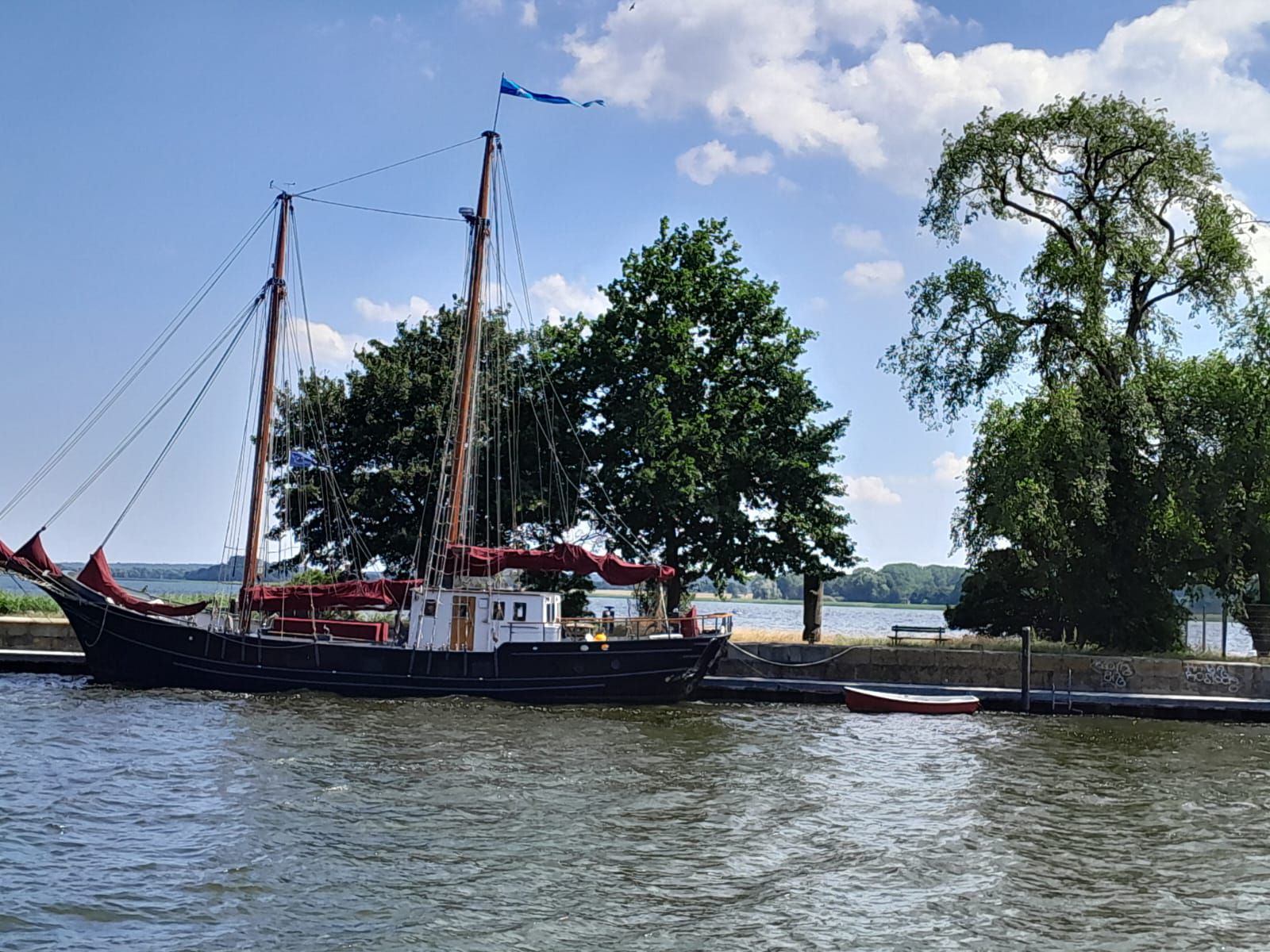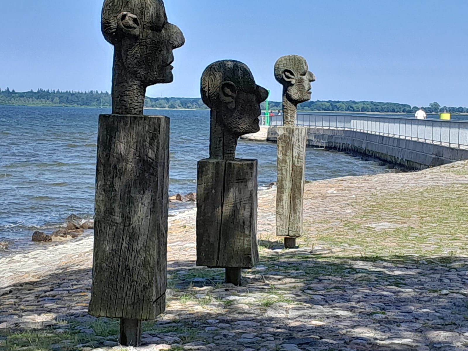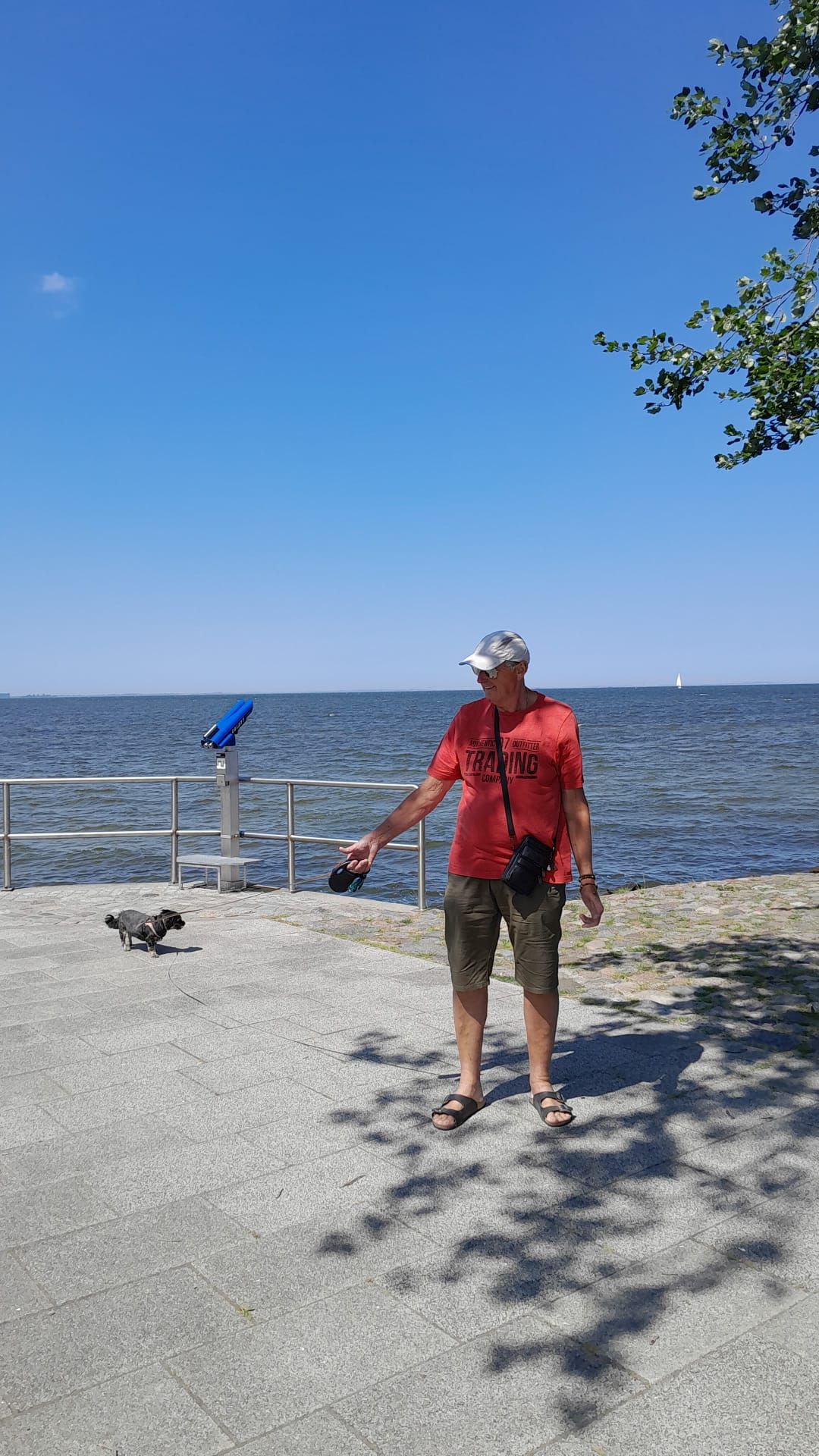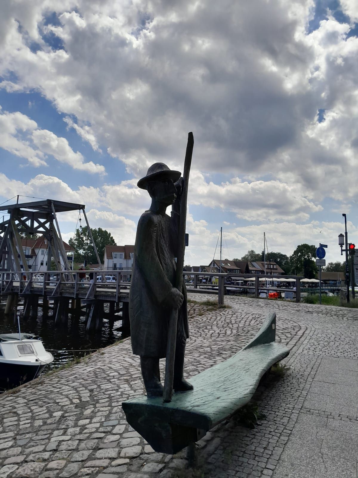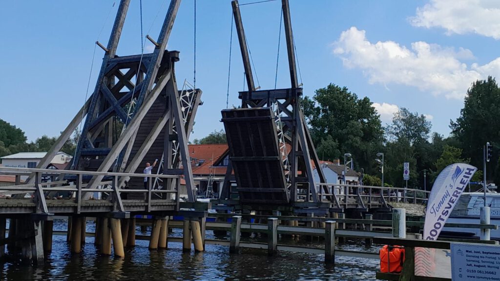 We zijn weer vertrokken van camping de Klomp en ook gelijk van het eiland Rügen. Ons doel vandaag is een camper/parkeerplaats bij een strand in Greifswald. De reis gaat lekker vlot het is ook maar zo’n 88 kilometer rijden dus met een flinke uur zijn we op plaats van bestemming. De camper/parkeerplaats vinden we vlot en we vinden er een mooi plekje voor de camper. Eerst maar eens lunchen en dan maar eens een wandeling naar de haven. Die haven en het wijkje er omheen zien er erg gezellig uit. Als we aan de lunch zitten wordt het steeds drukker en we constateren dat we precies op tijd hier waren, ietsjes later en we hadden de camper niet meer kwijt gekund. na de lunch lopen we naar de haven waar het gezellig druk is. We blijven even kijken hoe de Wiecker Holzklappbrücke open gaat. Het openen van de twee brugdelen gebeurt met mankracht. De houten basculebrug van Wiecker werd in 1887 gebouwd naar Nederlands model (dit heb ik op internet gevonden hoor). We lopen op ons gemak naar het einde van de haven waar je een mooi uitzicht hebt over de Oostzee. Weer terug bij de camper trekt André zijn zwembroek aan en lopen we naar het strand, dat ligt vlak achter de parkeerplaats, waar het trouwens steeds maar drukker en drukker wordt. Op het strand is het gezellig druk en terwijl André gaat zwemmen vermaak ik me met mensen kijken. Jammer genoeg mogen hier geen honden komen dus we hebben Skip achter moeten laten in de camper. Die staat gelukkig onder de bomen en met de maxxfan aan is het goed uit te houden binnen. Het blijft lang warm vandaag, heerlijk!