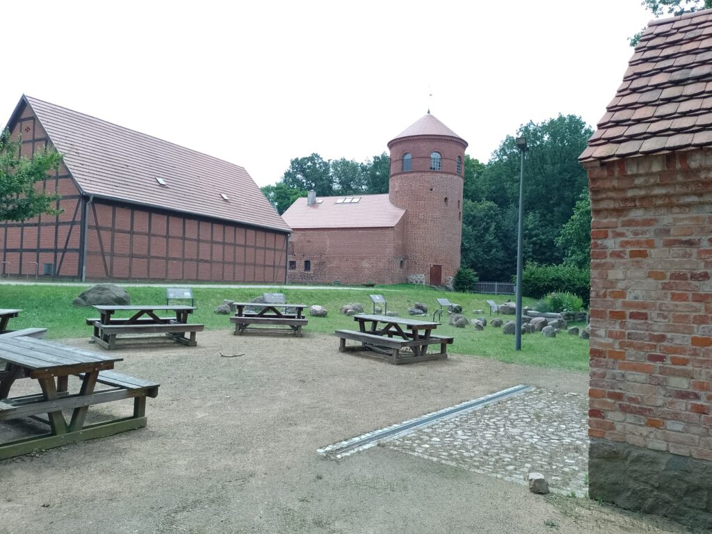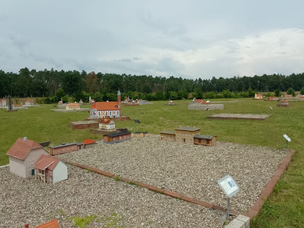 We hebben de camper/parkeerplaats vanmorgen weer verlaten. Achteraf hadden we wel spijt eigenlijk want we stonden daar heerlijk onder de bomen. Niet zo goed voor onze stroomvoorziening maar wel goed voor de temperatuur, want mensen wat was het warm vandaag! Niet dat we klagen hoor, we zouden niet durven maar vanmiddag was het buiten 36 graden en in de camper 39 graden en geen schaduw te vinden op de plaats waar we nu staan. Gelukkig ging het aan het einde van de middag (ik durf het bijna niet te zeggen) regenen 🙂 dat bracht een beetje verkoeling. André heeft zelfs nog een dansje in de regen gemaakt. Daar is een filmpje van maar dat zal ik niet met iedereen delen…. We staan op een parkeerplaats bij een miniatuur stad en een of ander museum waar je allerlei stenen kunt bewonderen en waar verhaaltjes bij staan waar die stenen vandaan komen. Normaal gesproken best interessant denk ik maar met deze warmte kon het ons maar matig boeien. De camperplaats is niet veel bijzonders maar hiervandaan kun je over een prima fietspad naar Wittstock fietsen dus dat waren we eigenlijk van plan. Omdat buienradar aangaf dat het om vier uur zou gaan regenen durfden we dat niet aan, wie weet morgenochtend. We hebben vanmorgen een stukje van de lanenroute gereden maar de weg was vreselijk slecht, harden dan 30 km per uur konden we niet rijden en we werden ondanks de lage snelheid nog helemaal door elkaar gerammeld. Na een kilometer of 18 hebben we dat maar opgegeven en voor een iets andere routen gekozen. Ook mooi daar niet van maar de omgeving was nu niet echt spectaculair. We moeten morgen maar even kijken of we de route weer oppakken.
