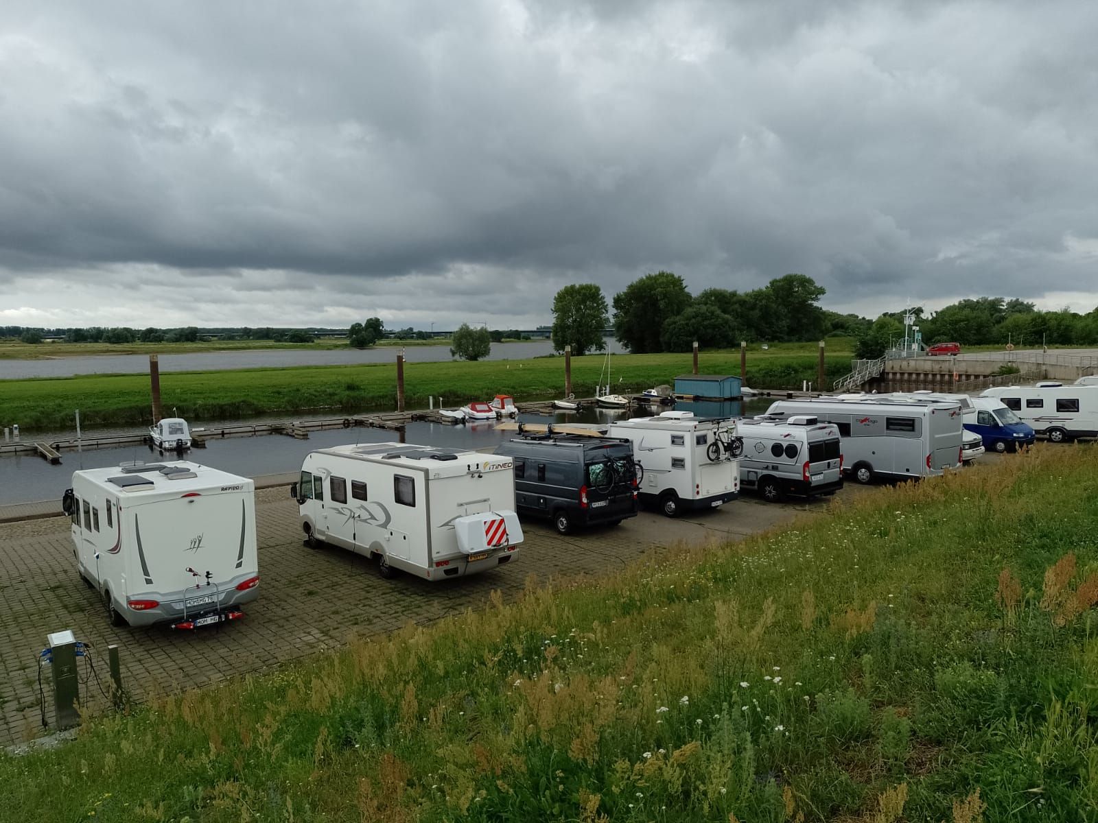 We zijn vanmorgen al (heel) vroeg vertrokken van de camperpaats in Wittstock. Het is ons opgevallen dat mensen vroeg vertrekken van een camperpaats en dat de lege plaatsen weer heel snel bezet zijn. Het is een ritje van 63 kilometer naar onze volgende bestemming dus met een klein uurtje zijn we al op plaats van bestemming waar er gelukkig nog een plaatsje voor ons is. We staan op de camperplaats aan de haven van Wittenberge met zicht op de Elbe. Helaas is er weinig reuring op de rivier. Het weer zit alweer niet mee en we zien maar heel af en toe een bootje op de rivier. Tussen de buien door zien we wel wat mensen wandelen af en toe maar echt gezellig is het niet. Halverwege de middag lijkt het weer wat op te knappen en lopen we even naar het centrum van de stad, dat is hier zo’n anderhalve kilometer vandaan dus dat is goed te doen. Onderweg zien we mooie gebouwen, sommige mooi opgeknapt maar andere erg verwaarloosd. Het centrum van Wittenberge is niet veel bijzonders, erg veel leegstand. Het weer werkt ook niet erg mee natuurlijk. We zijn net voor een flinke bui weer in de camper daar hebben we erg veel geluk mee. En dan natuurlijk voetbal, dat liep een stuk beter af dan tegen Oostenrijk. Met 3-0 gewonnen! De avond kan niet meer stuk 😄.