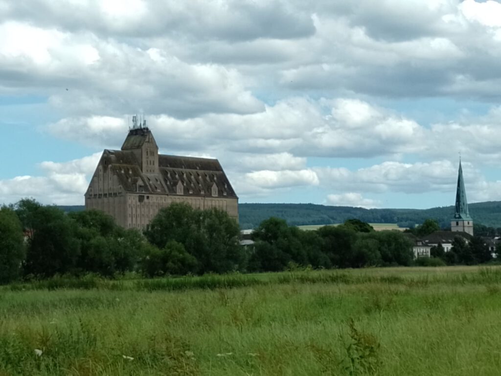 We hebben Celle weer verlaten. We rijden weer een stukje richting Nederland. Wel rustig aan hoor, we hebben nog even de tijd. Ons doel voor vandaag is Holzminden, daar heb ik een camperplaats gevonden vlak aan de Wezer en er lijken mooie fietsroutes te zijn. Het weer is vandaag weer prima dus we vertrekken een beetje op tijd zodat we vanmiddag misschien nog een rondje kunnen fietsen. De reis gaan voorspoedig, onderweg zien we het landschap om ons heen veranderen, er komen meer heuvels en de wegen krijgen ineens veel bochten, soms zelfs een haarspeldbocht. Rond een uur of één zijn we in Holzminden. Eerst maar even lunchen, lekker in het zonnetje en dan fietsen uit de camper. Via de app ‘RouteYou‘ heb ik een fietsroute gevonden in de vorm van een acht en laten wij nu precies in het midden zitten. De route is ruim 40 kilometer maar we kunnen nu mooi de helft doen. Het begin van de route is leuk, mooi langs de Wezer, maar dan….. dan moeten we de Wezer achter ons laten en begint het pad te stijgen, en te stijgen en te stijgen. Sommige stukken redden we het niet om te fietsen en moeten we lopen en zelfs dat valt niet mee. Na tweeëneenhalve kilometer alleen maar stijgen geeft de fiets van André het op en doet niets meer. Als we het pad bekijken zijn we nog lang niet boven, achter iedere bocht stijgt het pad weer verder. We besluiten terug te gaan, we weten dat we een redelijk vlakke route hebben gereden en we hebben geen idee wat ons nog te wachten staat. Wel jammer hoor. De weg naar beneden gaat een stuk sneller, doodeng is het soms zo snel gaat het. Ik ben blij als we weer op de vlakke weg staan. Als we beneden zijn kijkt André of er soms iets loszit aan de kabels, dat had hij boven aan de heuvel ook al gedaan maar toen stonden we behoorlijk schuin hij kijkt nu wat zorgvuldiger. Ineens bedenkt hij dat hij zal proberen zijn accu eens aan en uit te zetten. Dat helpt! De fiets doet het weer gelukkig. Maar als hij door een kuiltje rijdt doet de fiets het weer niet, gelukkig is dat voorlopig de laatste stuiptrekking want vanaf nu blijft de fiets het gelukkig doen. Na een uurtje zijn we weer terug bij de camper en genieten nog even van het mooie weer. Toch weer bijna 30 kilometer gefietst vandaag. Lekker hoor.