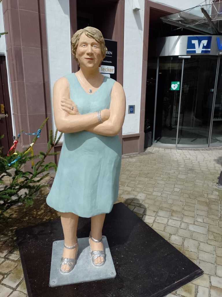 Onze laatste dag in Duitsland voorlopig. Morgen gaan we weer naar Nederland en dan zaterdag weer naar huis. We hebben vandaag een heerlijke rustige dag gehad. Vanmorgen even naar het centrum van Höxter gelopen daar zou de weekmarkt zijn. Die was er ook maar stelde niet veel voor. We spotten nog wel een beeld die we gisteren gemist hebben en een mooie pop gekleed in prachtige bloemen. We twijfelden of we nog zouden gaan fietsen maar vanwege het onzekere weer doen we dat toch maar niet. Met recht een rustige dag dus. En dan natuurlijk vanavond voetbal…