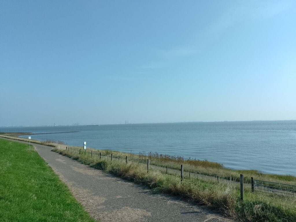 We zijn op camping Hof Maire in Rilland, in Rilland heeft André het grootste gedeelte van zijn jeugdjaren doorgebracht. Hij wilde eens kijken of hij nog iets herkende. De camping is schuin tegenover de plaats waar vroeger de lagere school zat. Het huis van de toenmalige directeur staat er nog maar de school zelf is verdwenen. We fietsen naar zijn oude huis om te kijken hoe dat er nu bij staat, nou…het huis staat er nog maar is erg verwaarloosd, voor de ramen op de eerste verdieping zijn vuilniszakken geplakt. De huizen in de straat zijn erg wisselend in staat van onderhoud, er staan goed onderhouden huizen tussen maar de meeste zien er niet uit. Toch vindt hij het wel leuk om terug te zien. Na een rondje Rillland fietsen we richting Oosterschelde, we klimmen de dijk op en fietsen een heel eind langs het water. Daarna steken we Zuid-Beveland recht over om naar de Westerschelde te gaan. Dat kan hier makkelijk want het is hier maar smal tussen de Oost- en Westerschelde. Na een kleine 30 kilometer fietsen zijn we weer op de camping daar zitten we nog tot bijna half acht buiten, dan verdwijnt de zon achter de bomen en koelt het af. De rest van de avond zitten we lekker binnen.