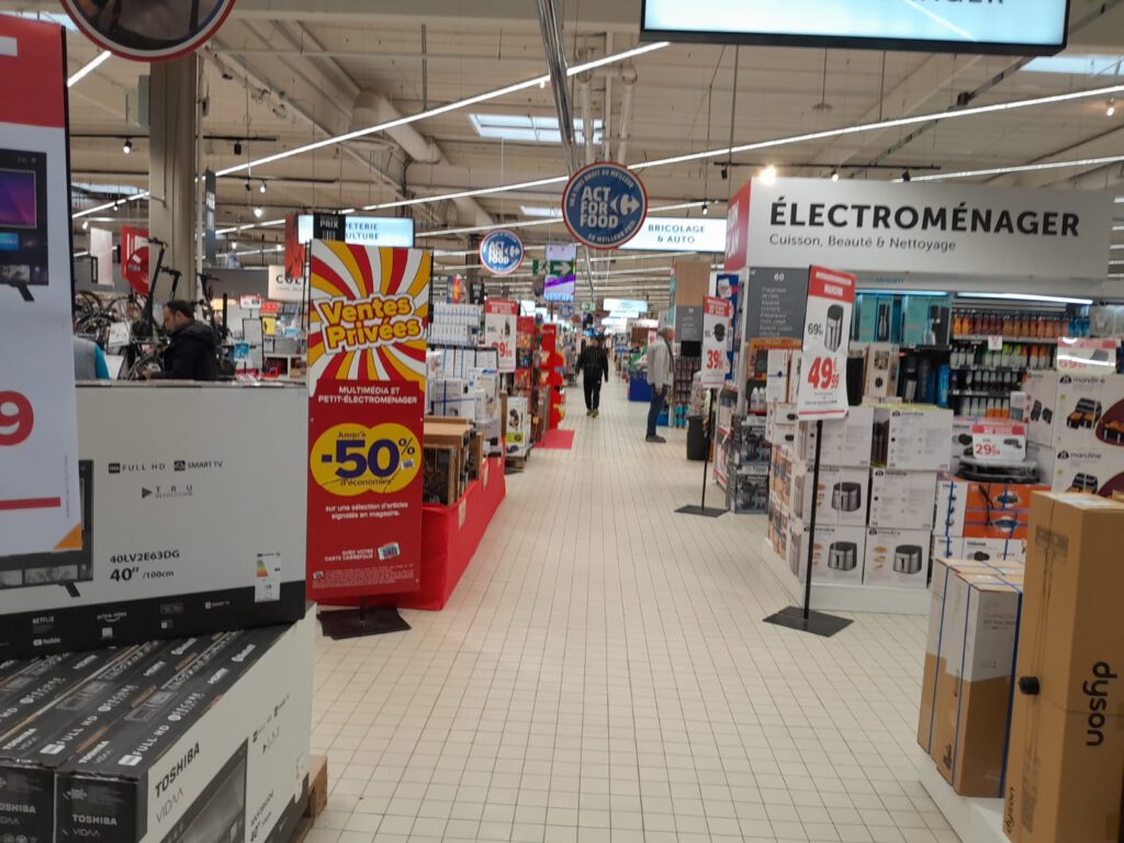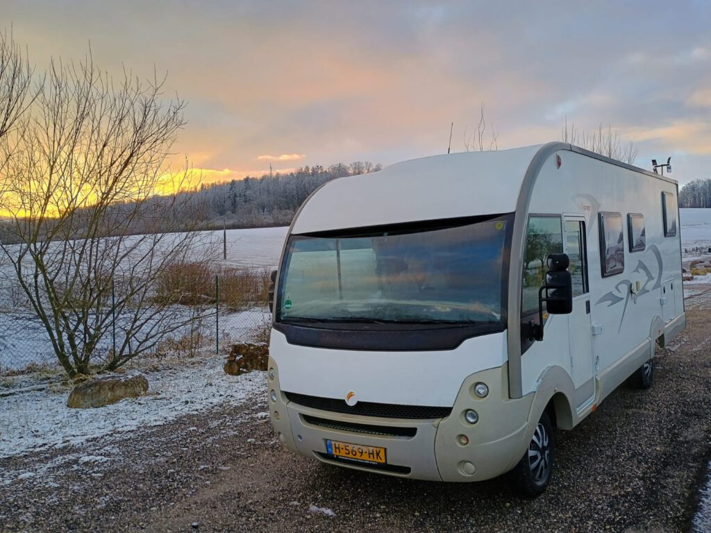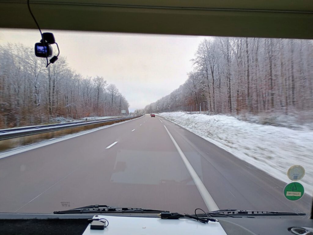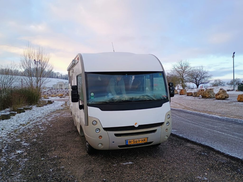 We zijn weer flink opgeschoten vandaag. Vanmorgen snel nog een paar foto’s gemaakt van onze overnachtingsplaats, gelukkig zijn we niet ingesneeuwd :-). De natuur is wel heel erg mooi zo met de sneeuw. We hebben vandaag netjes allebei de helft van de route gereden en zijn onderweg een paar keer gestopt. We hebben geluncht bij een ‘centre commercial’ vlak bij Vichy, konden we mooi even overdekt de beentjes strekken. Ik heb een foto gemaakt in de E’Leclerc maar je kan niet zo goed zien hoe groot die wel is. We zijn al in veel supermarkten geweest in Frankrijk maar deze spant toch wel de kroon wat grootte betreft. Verder hebben we niet veel meegemaakt.