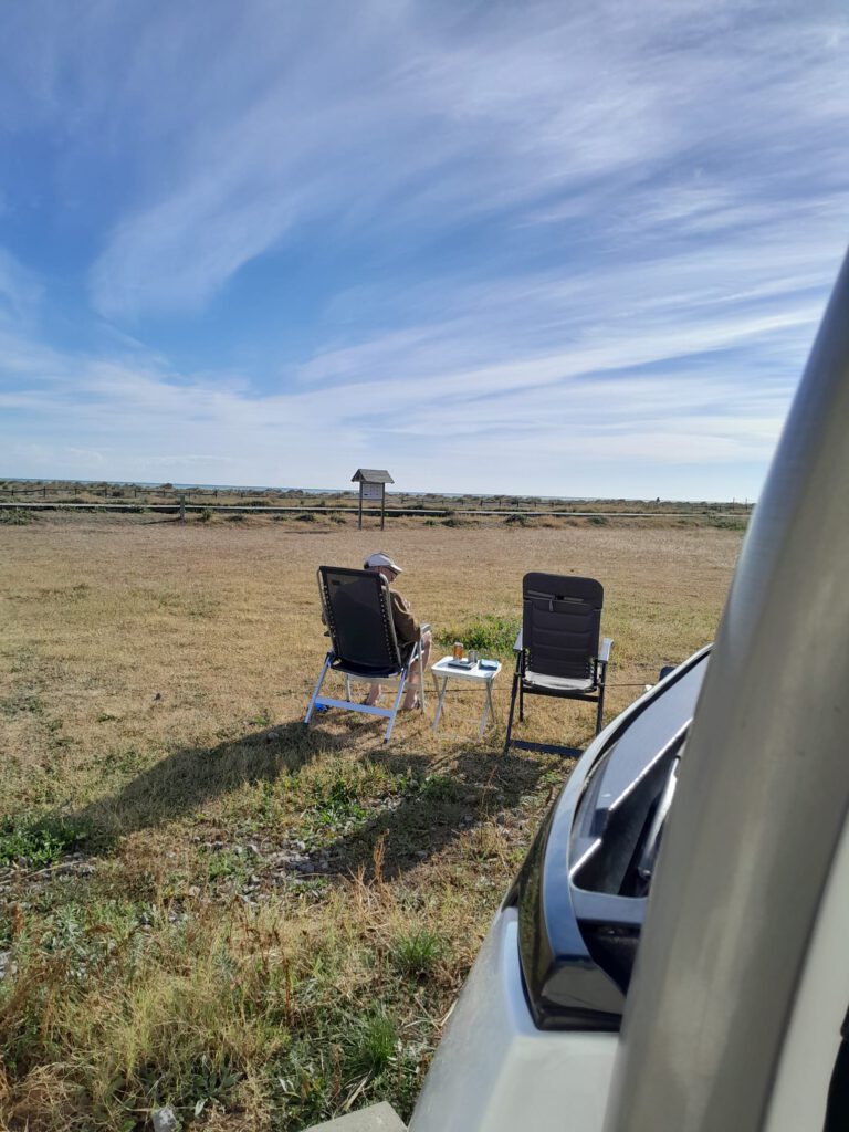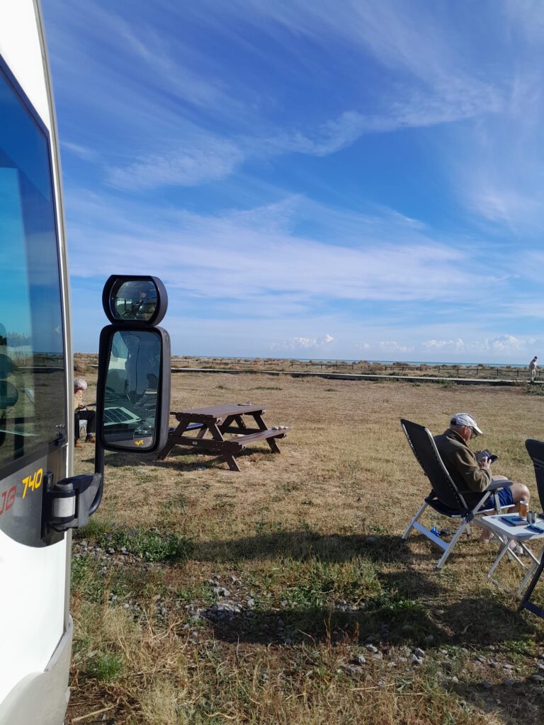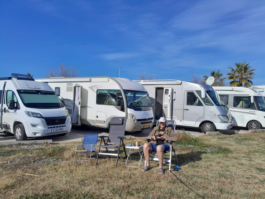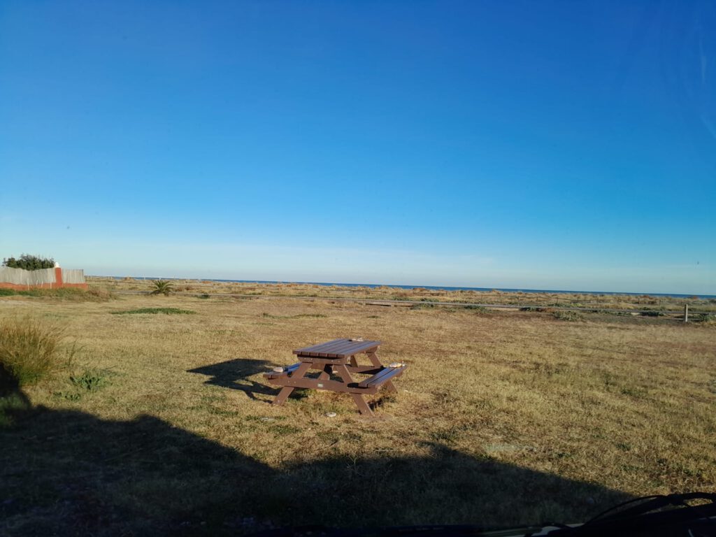 Vanmorgen was het weer tijd om deze stad te verlaten. We hebben een camperplaats gevonden vlak bij zee ongeveer 40 kilometer hiervandaan. Maar eerst even LPG tanken, we hebben toch nog wel iedere ochtend een uurtje en ’s avonds vanaf een uur of zes tot we naar bed gaan de kachel aan en dat kost natuurlijk wel gas. Het is geen enkel probleem hier in Spanje om LPG te tanken en ook deze keer is een tankstation snel gevonden. Dan richting Casablanca, die reis gaat vlot maar we hebben in een rit van zo’n 40 kilometer nog nooit zoveel rotondes gehad, ongelooflijk. De grootste afstand zonder rotondes was vier kilometer en dat waren de laatste vier kilometers die over een heeeel smal weggetje gingen. We moesten verschillende keren stoppen om de tegenliggers stapvoets te laten passeren maar het was de moeite waard want we staan op een prachtig plekje. De campers staan wel heel dicht op elkaar maar voor en achter de campers is voldoende ruimte om lekker buiten te zitten. We hebben heerlijk buiten geluncht en een stukje langs de zee gewandeld. Voor Skip een walhalla want er lagen heel veel stenen en behalve graven in het zand is ze ook gek op het achterna rennen van stenen, die wij dan natuurlijk weg moeten gooien.