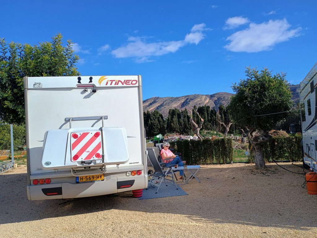 Woensdag hebben we bij de receptie gevraagd of we nog een paar dagen langer kunnen blijven en dat kan gelukkig. Helaas blijkt het plaatsje waar ze ons bedacht hadden veel te klein maar na wat meedenken van hun kant (waarschijnlijk omdat er op naam van onze vrienden gereserveerd is) hebben ze toch een plaatsje voor ons gevonden. Daar kunnen we op woensdag al heen en blijven staan tot maandag. TOP! Hier op de camping heb je goed zicht op de ‘Puig Campana-berg’. Het verhaal gaat dat de reus Roldán een stuk uit de berg van Puig Campana sneed, zodat de lichtstralen er doorheen konden komen en deze zo zijn geliefde langer konden verlichten. Lees hier het romantische verhaal van de reus Roldán en de Puig Campana.