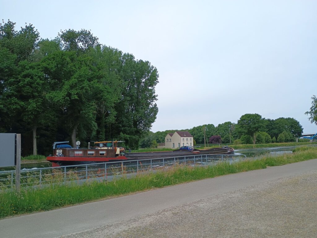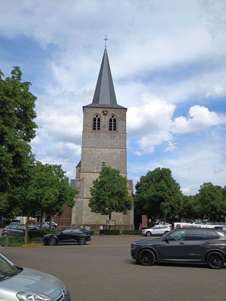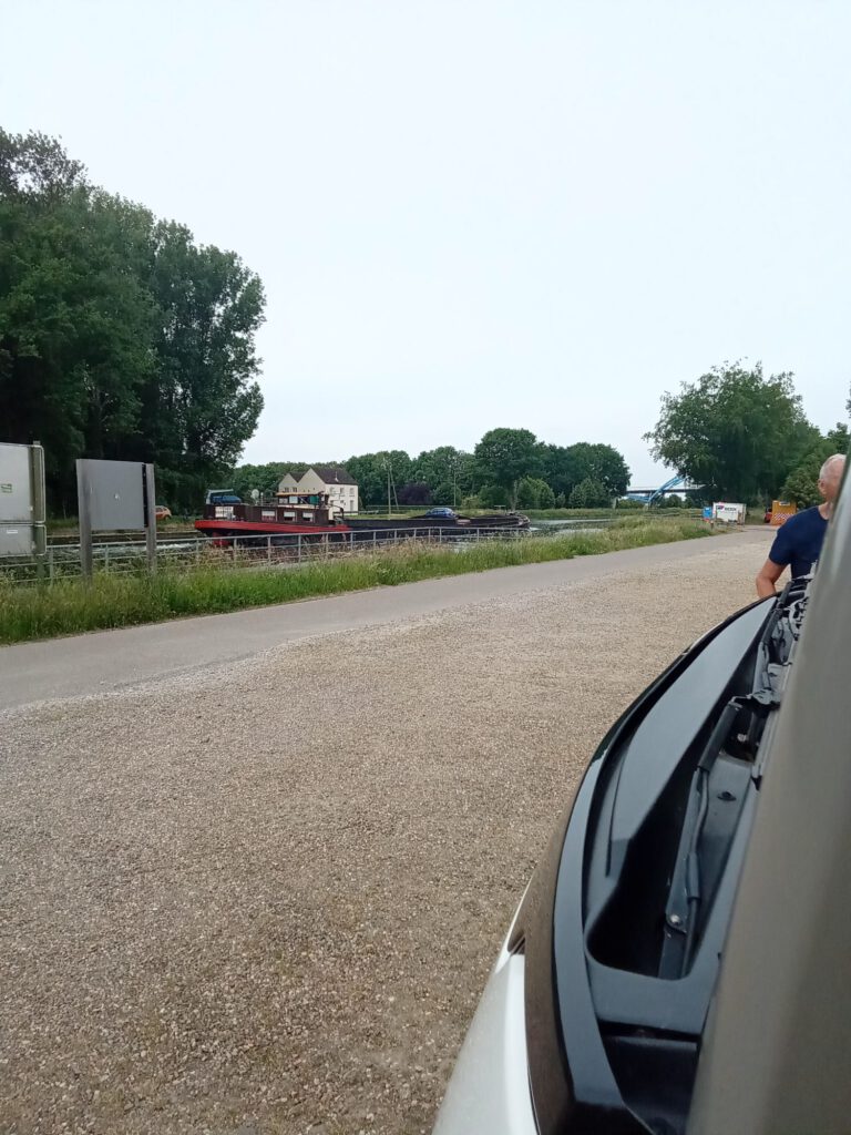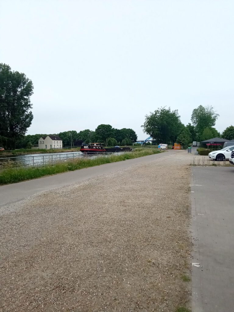 Weer een nieuw plekje vandaag, we hebben er wel bijna dertig kilometer voor gereden maar dan heb je ook wat. Een leuk plekje aan een best drukke vaart. Er zijn hier vier plaatsjes voor campers en als we aankomen is er eentje bezet. Gelukje dus weer. We staan aan een druk fietspad en er komt ook regelmatig een vrachtboot of een plezierjachtje over de (dit heb ik op internet gevonden) Zuid-Willemsvaart. We zijn hier lekker op tijd omdat we voor elf uur de camping moesten verlaten. Genoeg tijd dus om te relaxen. Als we genoeg hebben van het relaxen springen we even op de fiets om naar het tien kilometer verderop gelegen Bocholt te gaan. In Bocholt is op woensdagmiddag markt en om nu de hele middag niks te doen schiet ook niet op. De fietstocht gaat grotendeels langs de Zuid-Willemsvaart want ook Bocholt ligt hieraan. In Bocholt aangekomen fietsen we naar de kerk want meestal is daar ook de markt te vinden. Hier niet, er staat alleen een kippenboer. Hoewel…. bij navraag aan een voorbijganger blijkt dit wel degelijk de weekmarkt te zijn, één kraam, maar volgende week zijn er weer twee hoor, de visboer heeft het deze week af laten weten maar volgende week is hij zeker weer van de partij! Nou ja, gelukkig ging het ons niet om de markt maar om een stukje te fietsen en dat is gelukt.