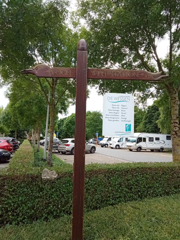 We zijn vanmorgen weer vertrokken uit vertrokken uit Bree. Maar niet voordat we gistermiddag even naar het marktplein gewandeld zijn. Dat was maar een kilometertje van de camperplek dus we zijn voor de verandering eens gaan lopen, kon Skip zich ook even uitleven onderweg. Beetje jammer dat we op de terugweg een beetje zijn gelopen en weer een heel eind terug moesten lopen voor we weer op de goede weg waren. Uiteindelijk stond de teller op ruim vijf kilometer! Maar goed, vanmorgen dus weer een ander plekje gezocht. Deze keer in Dilsen-Stokkem bij het bezoekerscentrum “de Wissen“, leuk plekje en het bezoekerscentrum was wel even leuk om te bekijken. Niet echt heel spectaculair maar vooruit toch leuk. Aan het eind van de middag zijn we nog naar Maaseik gefietst, daar is een avondmarkt. Het vandaag niet echt fietsweer geweest maar omdat het weer aan het eind van de middag wat opknapte was het fijn om even wat te ondernemen. Maaseik ligt hier precies tien kilometer fietsen vandaan dus dat is goed te doen. Onderweg kwamen we langs de herinrichting van het natuurgebied Elerweerd. Een kilometers lange lopende band langs het fietspad. Een meneer die daar ook even stond te kijken vertelde dat het grind op de lopende band opgegraven en afgevoerd werd. De Maas krijgt hier meer ruimte om te overstromen en landbouwers zullen hun velden in perioden van droogte kunnen beregenen met water uit een grindplas. Heel interessant om te horen en om de enorme machines te zien die de lopende band aan de gang houden en het grind opgraven. Op de markt hebben we een frietje gegeten en zijn toen weer teruggefietst. In twee uurtjes uit en thuis. (koud dat het was op de terugweg, wat een verschil met vorige week!)