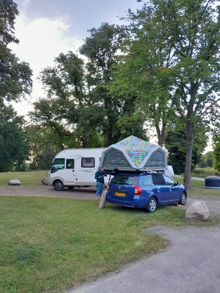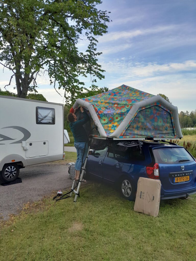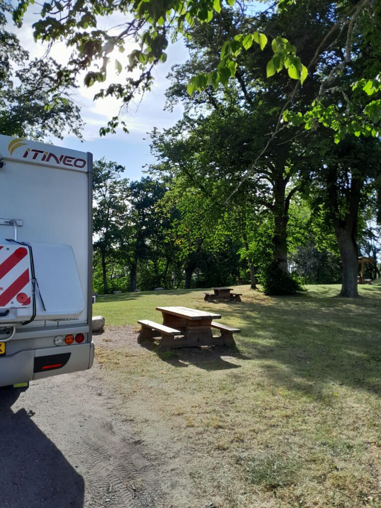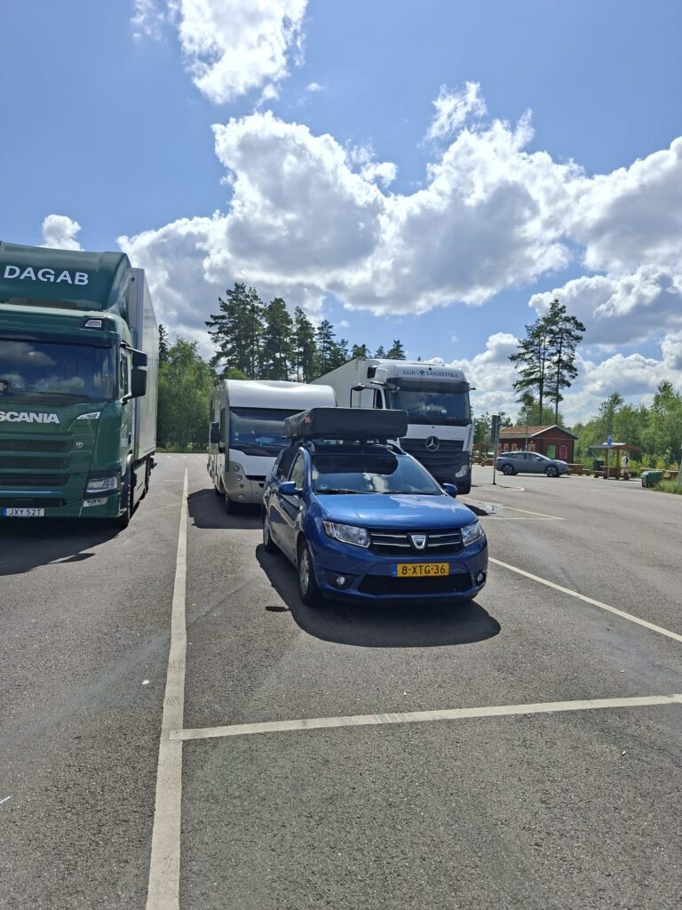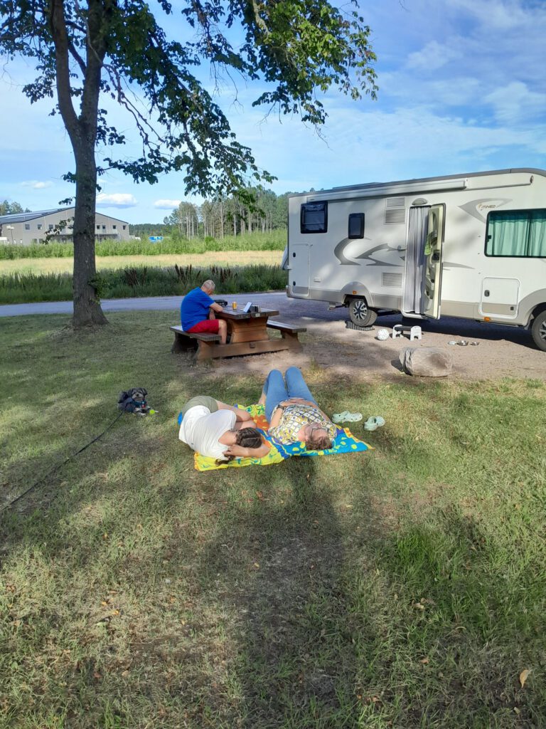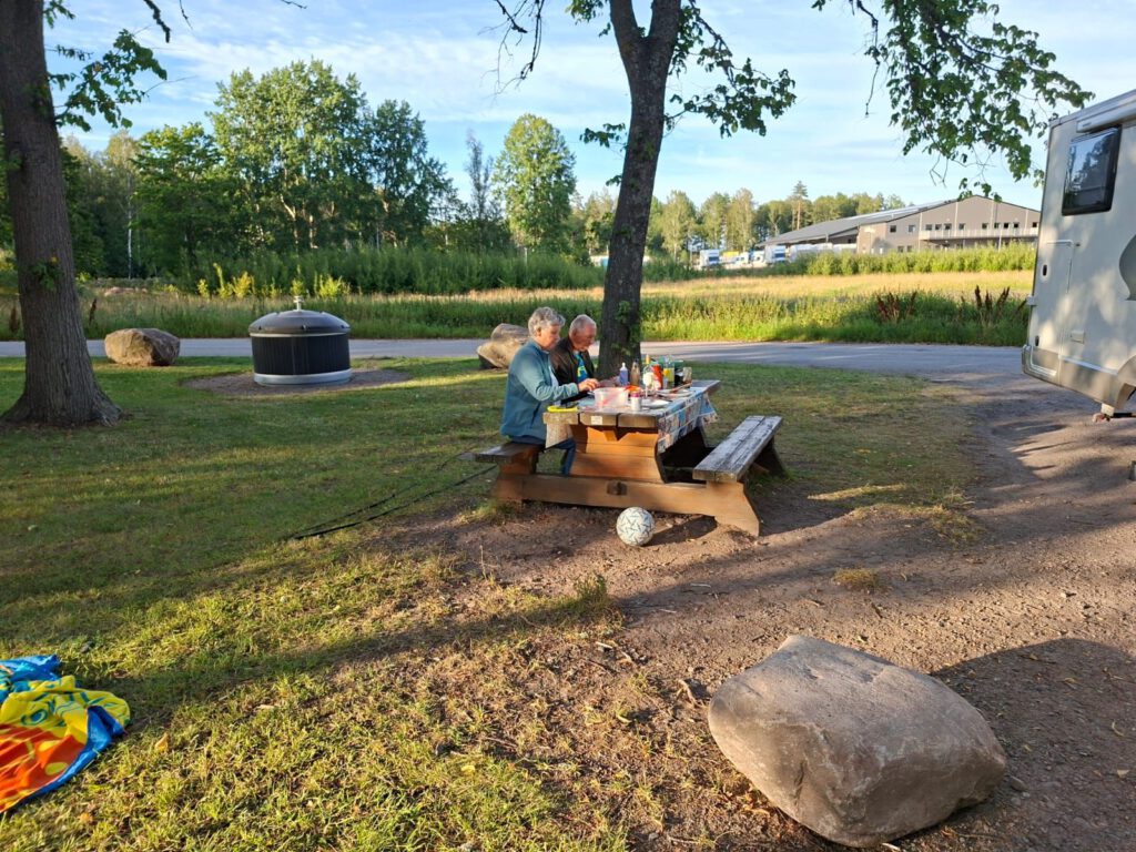 Vanmorgen hebben we Lund weer verlaten. De navigatie is ingesteld op Rädastrands camping, dat is ons doel voor morgen. Omdat dat nog ruim 600 km rijden is doen we het in twee keer. Waar we vandaag eindigen dat weten we nu nog niet. Maar…eerst even boodschappen en tanken. Na een uurtje stoppen we voor koffie, om een uur of twee voor de lunch en dan nog een keertje voor koffie. Rond vijf uur staan we op een leuk plekje aan de rand van Mariestad, we besluiten om hier te overnachten. De zon schijnt nog heerlijk, we staan aan de rand van een grasveldje met picknicktafels dat komt goed uit want om hier de stoelen buiten te zetten lijkt niet zo gepast. We eten buiten wat heel gezellig is tot er een paar wespen mee willen eten, Lotte en Daan zijn niet meer te houden en vluchten naar binnen. Wij zijn echte bikkels en blijven ‘gewoon’ zitten. Even later zijn de wespen verdwenen en komen de muggen en de vliegen, gelukkig hebben we daar niet heel veel last van. Om negen uur gaan we naar binnen want André en Marijke willen B&B kijken, niet dat ze verslaafd zijn ofzo hoor…. Morgen hebben we nog een kleine 200 km te gaan tot de Rädastrands camping.