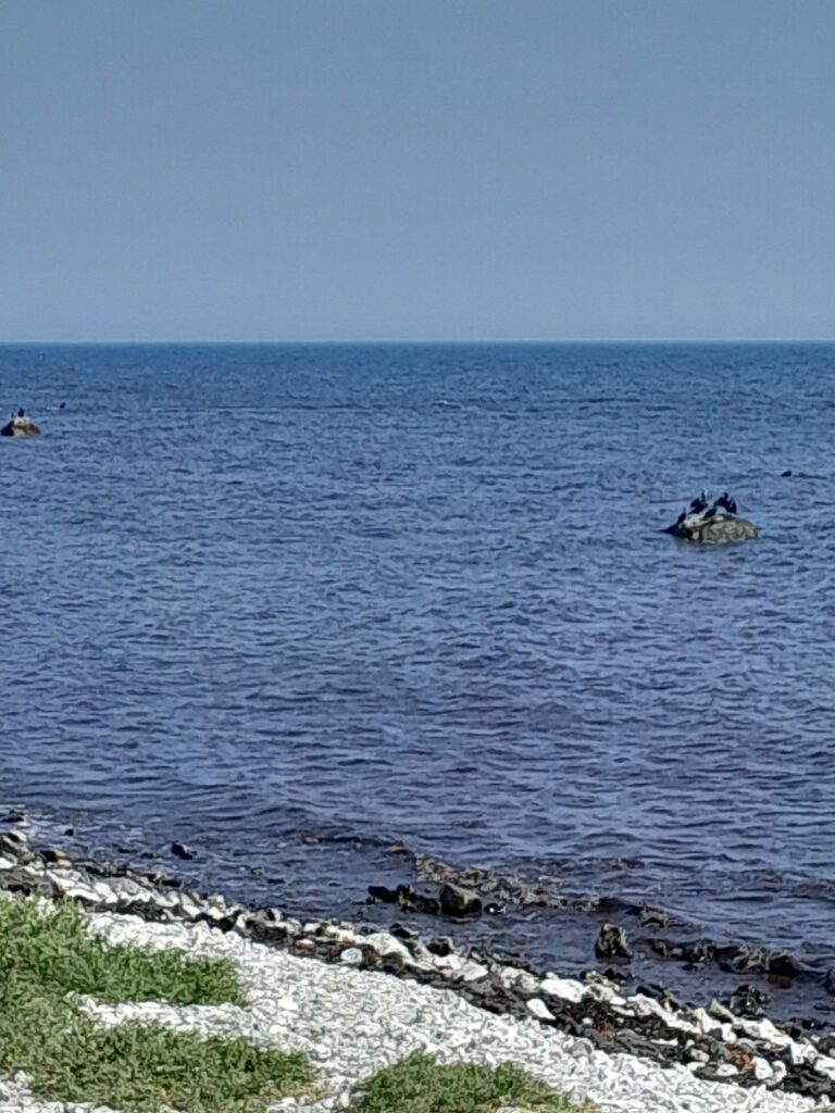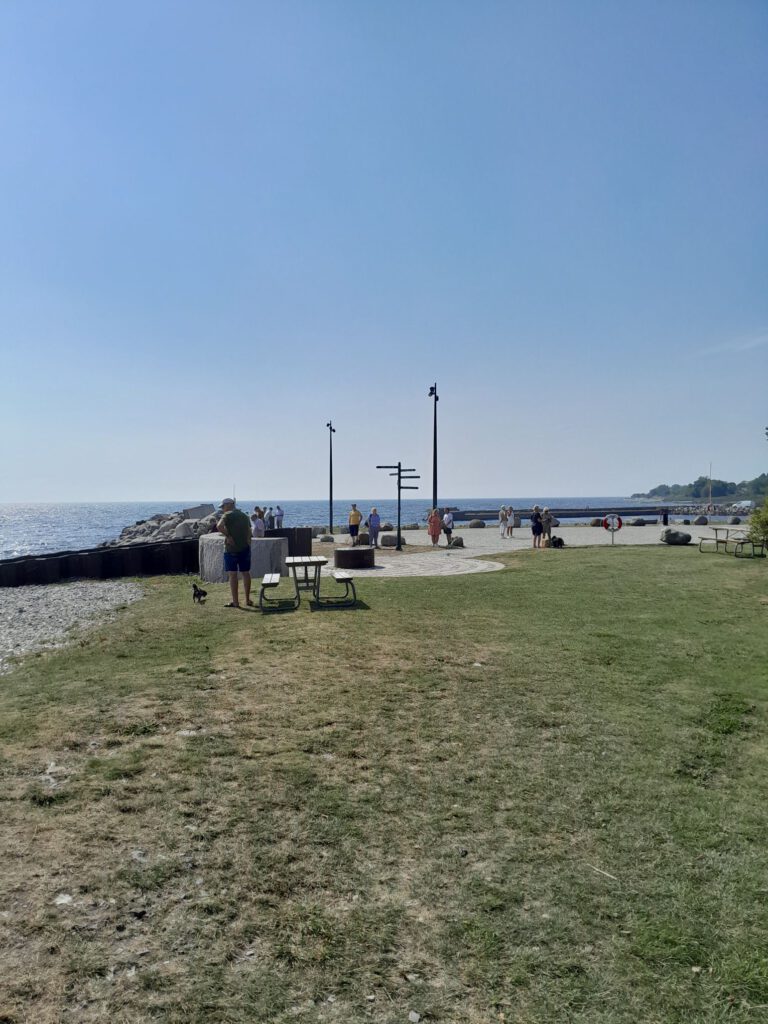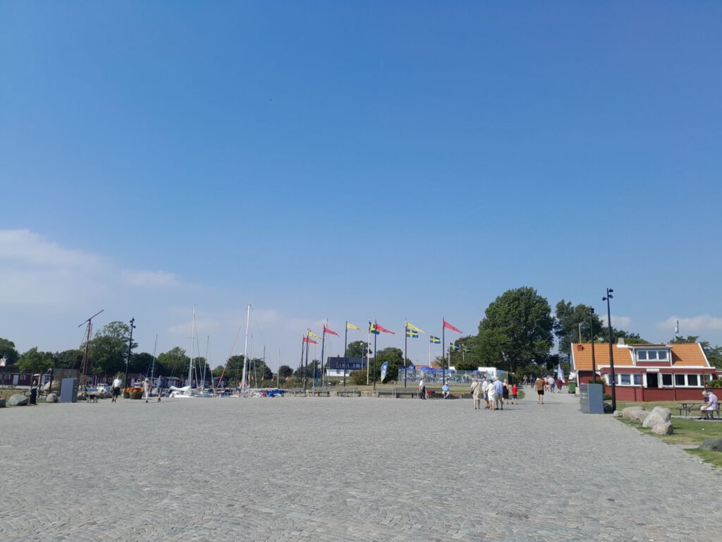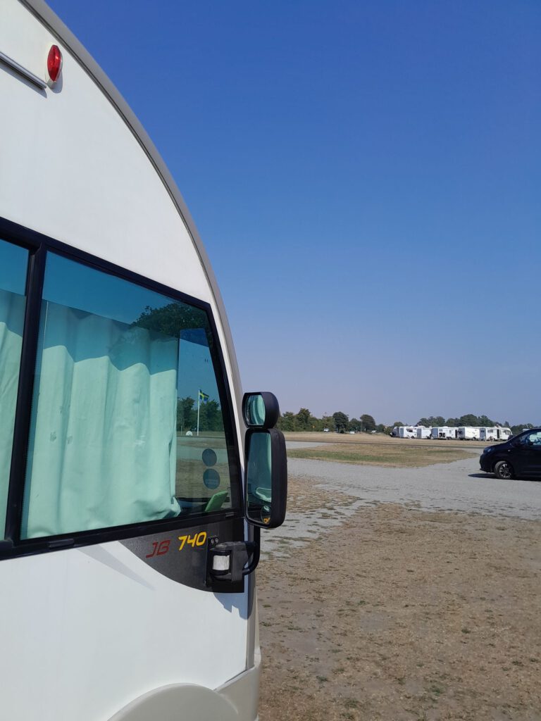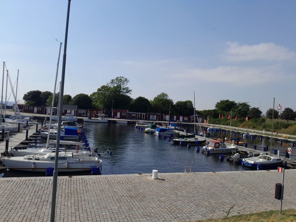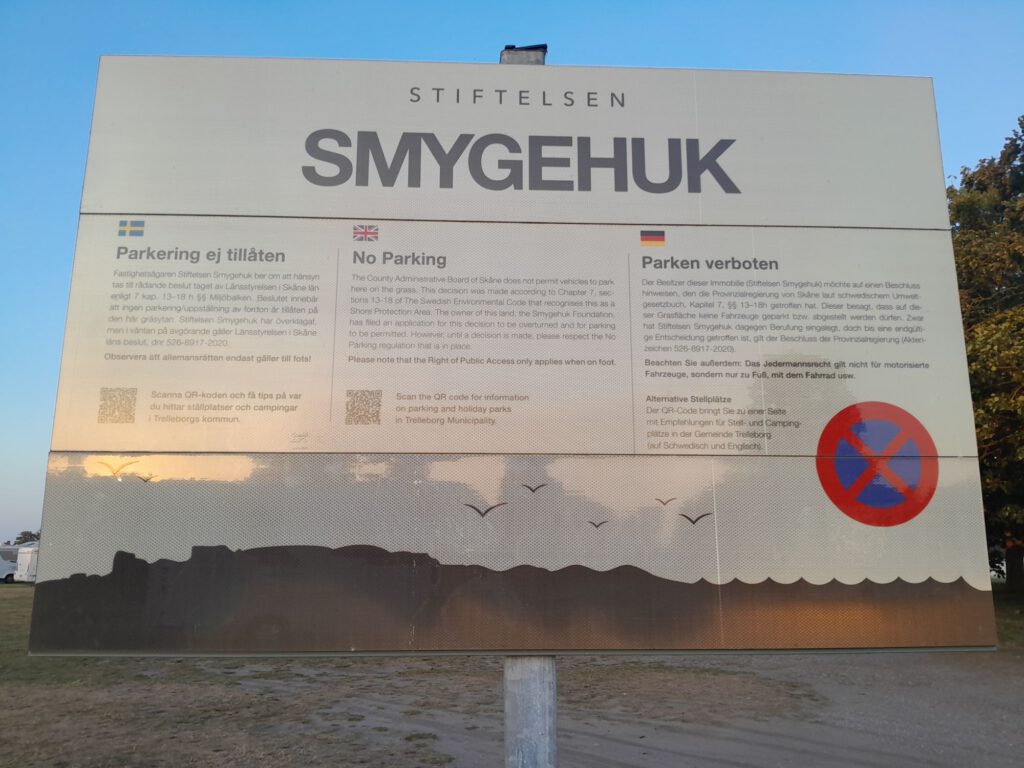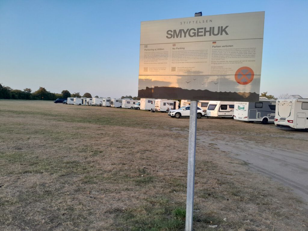 We hebben Marijke en Daan vanmorgen uitgezwaaid, wel even moeilijk hoor. Het waren drie super gezellige weken met z’n viertjes en nu gaan we weer verder met z’n tweetjes. Wij zijn vlak daarna ook vertrokken. Eerst naar de Lidl in Trelleborg voor de boodschappen. We zijn niet in Trelleborg gebleven want ik kon op internet niets vinden wat we de moeite van het bezoeken waard vonden. Na de Lidl hebben we de kustweg richting Ystad genomen. Heel erg ver zijn we niet gekomen want onderweg kwamen we al een heel leuk plekje in Smygehuk tegen waar we in eerste instantie alleen even het toilet wilden legen maar waar we uiteindelijk de hele dag gebleven zijn. Er staat hier een groot bord (aan de linkerkant van het pad) dat je daar niet op het gras mag parkeren (het staat er bijna vol). Aan de rechterkant van het pad staat niet zo’n bord dus kiezen we voor de rechterkant, we denken (hopen) dat we hier wel mogen overnachten. We gaan het zien… Na de lunch maken we een rondje langs allerlei winkeltjes van kunstenaars die hier hun kunst te koop aanbieden. Er zijn hier ook veel cafeetjes en ijswinkeltjes. kortom het is hier gezellig. In de loop van de middag wordt het steeds drukker met campers en caravans en vooral op het grasveld links waar al veel campers stonden komen steeds meer campers te staan. Dat zijn ook wel de mooiste plekken met prachtig zeezicht. We zijn echt benieuwd hoe dat gaat aflopen. Ik heb gelezen dat ze hier in Zweden een heel streng parkeerbeleid hebben. Wel schijnt het zo te zijn dat als er geen expliciet verbod is dat je er dan mag parkeren en overnachten.