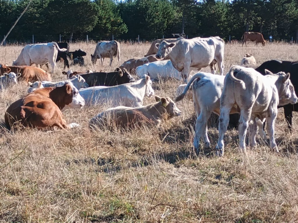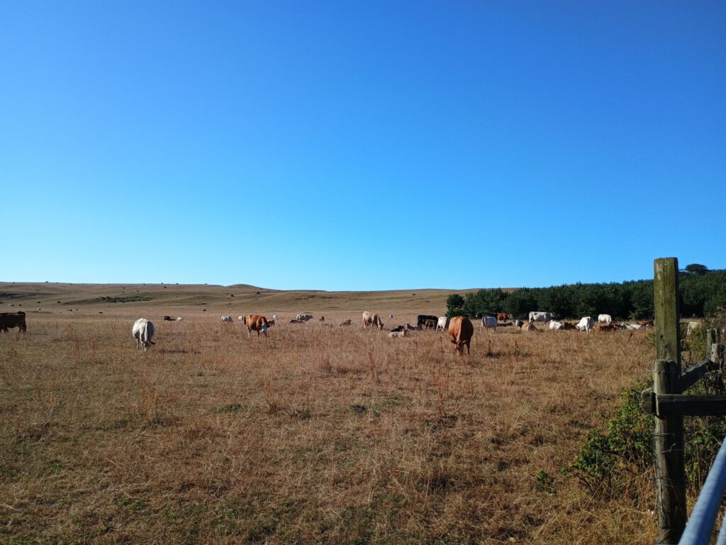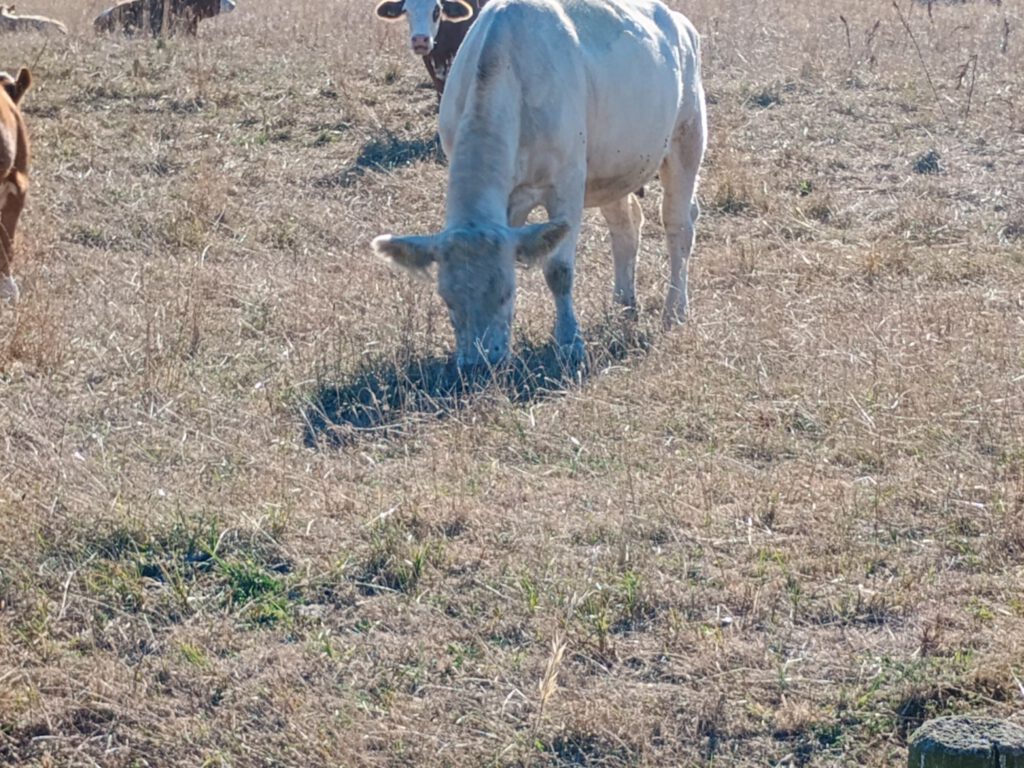 Gisteren stonden de koeien een heel eind weg maar vanmorgen stonden ze bijna naast de camper.