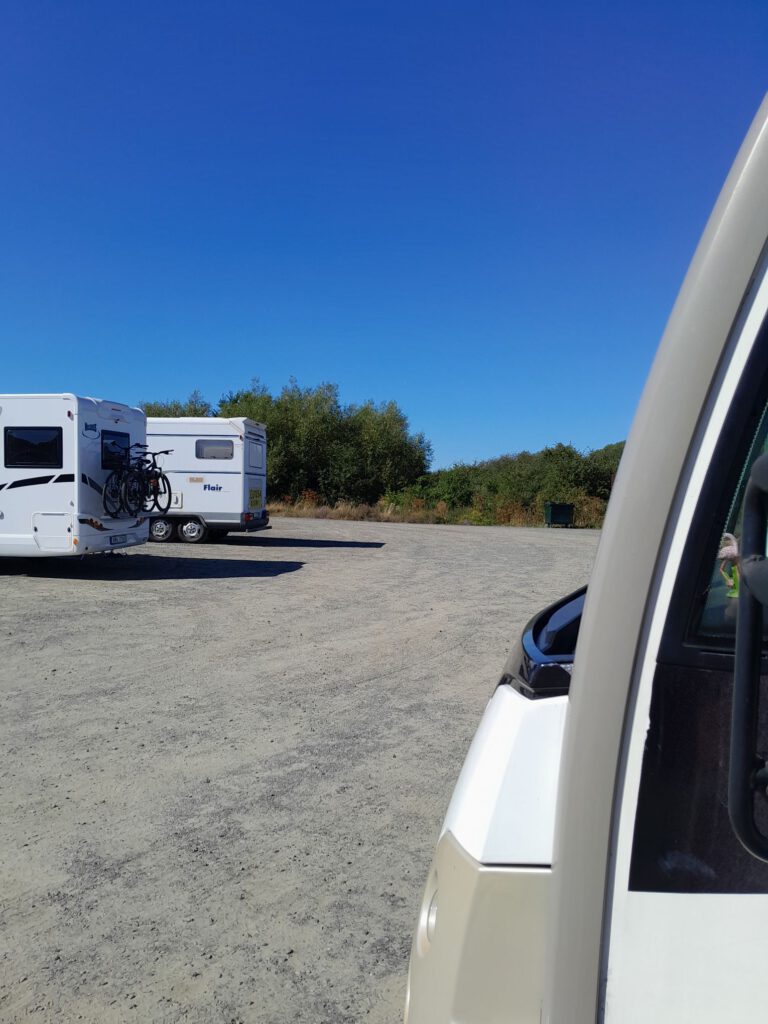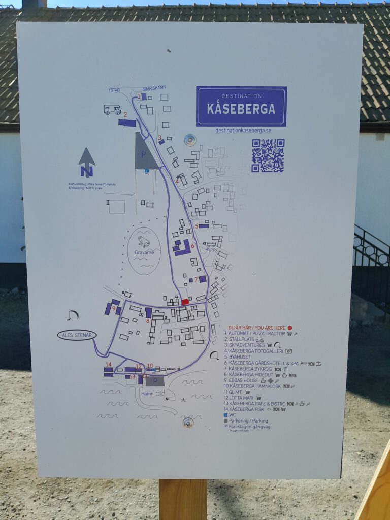 Vanaf de parkeerplaats was het nog een kilometer de berg op wandelen ongeveer. Echt heel interessant vonden we het eigenlijk niet maar als je zo dicht in de buurt bent moet je toch even kijken natuurlijk 🙂. Weer terug op de parkeerplaats stond het daar inmiddels bommetje vol, we waren blij dat we er een beetje op tijd waren want behalve dat het al best warm was zou het parkeren ook een probleem geworden zijn denk ik. Vanaf daar zijn we eerst boodschappen gaan doen en op de parkeerplaats daar maar gelijk geluncht. Daarna ging het richting Kristianstad, het lijkt ons een leuke stad om te bezoeken maar niet meer vandaag. Het is alweer lekker warm en we genieten van het lekkere temperatuurtje op onze stoeltjes naast de camper. Tot de wespen het plezier komen vergallen. ’s Avonds koelt het buiten best snel af vinden we, in de camper gaat dat een stuk minder snel maar tegen de tijd dat we naar bed gaan is het prima te doen hoor. We zijn een beetje huiverig om de ramen open te zetten vanwege muggen, hoewel we daar nog niet heel veel last van hebben gehad gelukkig.
