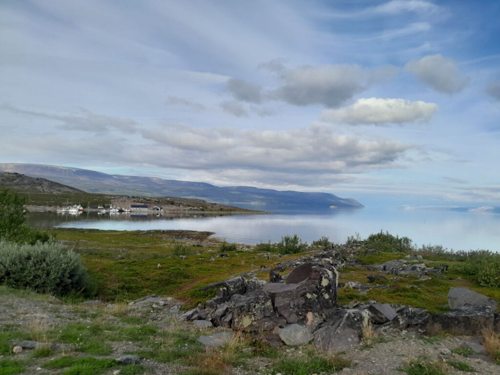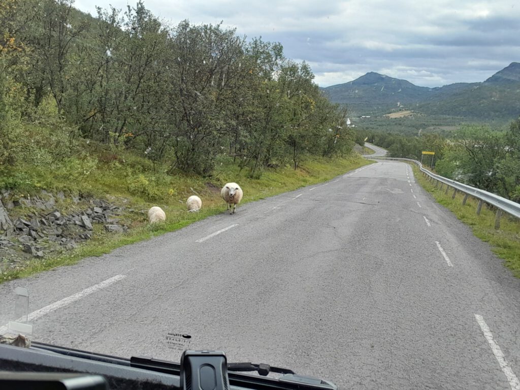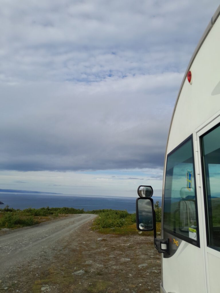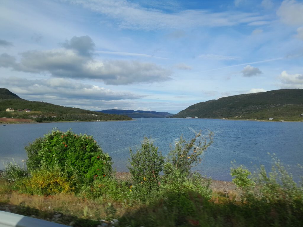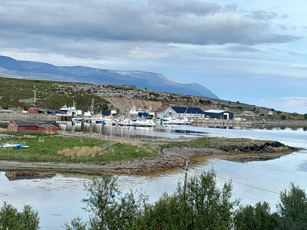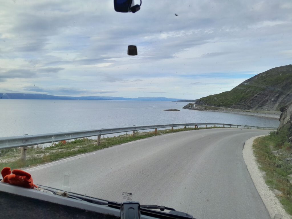 Ondanks dat het plekje van gisteravond niet echt geweldig was hebben we toch prima geslapen. Om een uur of elf gaan we weer rijden, weer verder richting het noorden. Na zo’n anderhalf uur zijn we bij de grens van Noorwegen. Vlak voor de grens tanken we nog even, dat is schrikken een liter diesel kost hier € 1.95, pfft zo duur hebben we het nog niet gehad, maar beter duur dan niet te koop zal ik maar zeggen. Even later steken we de rivier Tanaelva over, deze vormt 256 kilometer lang de grens tussen Finland en Noorwegen. Geen douane te zien dus we kunnen zo doorrijden. De weg aan de Noorse kant is meteen een heel stuk slechter dan aan de Finse kant. We weten gelijk dat we weer in ander land zijn, ook door de prachtige natuur, die is heel anders dan in Finland. In Tana Bru een dorpje in Noorwegen zo’n 180 na vertrek geef ik het stuur over aan André. Volgens de kaart begint hier de ‘gele’ weg en die laat ik graag aan mij voorbij gaan… Achteraf onnodig hoor, de weg bleef goed te rijden alleen af en toe een beetje smal. Het scheelt dat hier heel weinig verkeer is dus je hoeft maar heel af en toe uit te wijken. Deze route is wel heel erg mooi, we kregen de tip over deze weg van iemand die we onderweg tegenkwamen en hebben zeker geen spijt dat we deze tip ter harte hebben genomen. Op het advies van dezelfde tipgever willen we morgen naar Mehamn, dat is een plaatsje in het uiterste noorden van Europa, minstens zo mooi als de “echte” Noordkaap en groot voordeel… hier hoef je niet te betalen :-), we blijven Hollanders natuurlijk. We eindigen onze reis vandaag op een geweldige plek met een prachtig uitzicht, er is hier verder niets maar het uitzicht is echt geweldig!