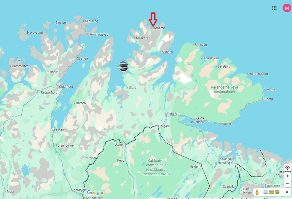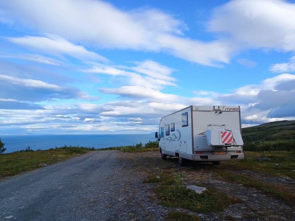 Vandaag zijn we naar Mehamn gereden dat is het noordelijkste plaatsje waar je goed met de auto kunt komen. (Klik hier voor webcambeelden van Mehamn) Achteraf hadden we nog een stukje verder kunnen rijden maar dat zagen we pas op een bord op de terugweg. In Mehamn hebben we een stukje gelopen naar de zee, daar konden we met de camper niet komen. Het uitzicht was geweldig, gelukkig scheen de zon net toen we er waren want onderweg er naar toe leek het soms wel avond zo donker was het. De weg naar Mehamn zo’n 80 kilometer is geweldig mooi, eindeloze uitzichten en veel rendieren in hele kuddes bij elkaar. We moesten dezelfde weg weer terug maar dat was zeker geen straf, als we 30 auto’s tegen zijn gekomen vandaag was het veel. We zijn weer op hetzelfde plekje als gisteren gaan staan, we hoopten op het noorderlicht maar helaas hebben we dat niet gezien. De kans zou vanavond het grootst zijn maar helaas dus. Morgen maken we er een rustige dag van waarschijnlijk, we hebben zoveel gereden de afgelopen dagen dat we daar wel weer even aan toe zijn.