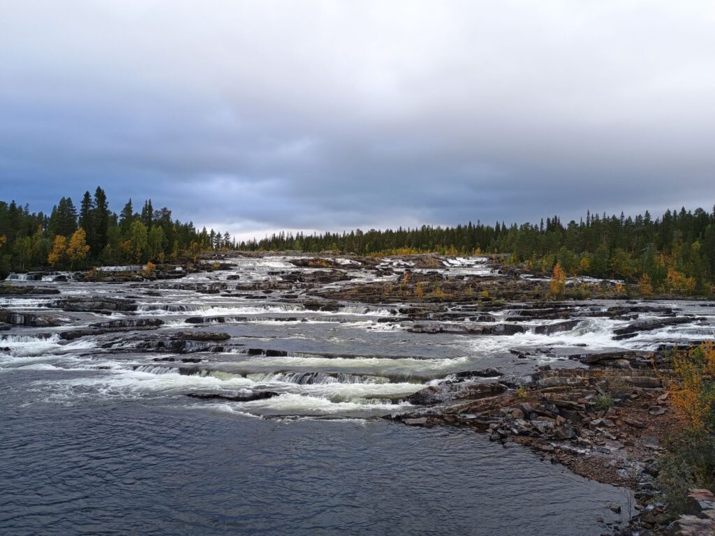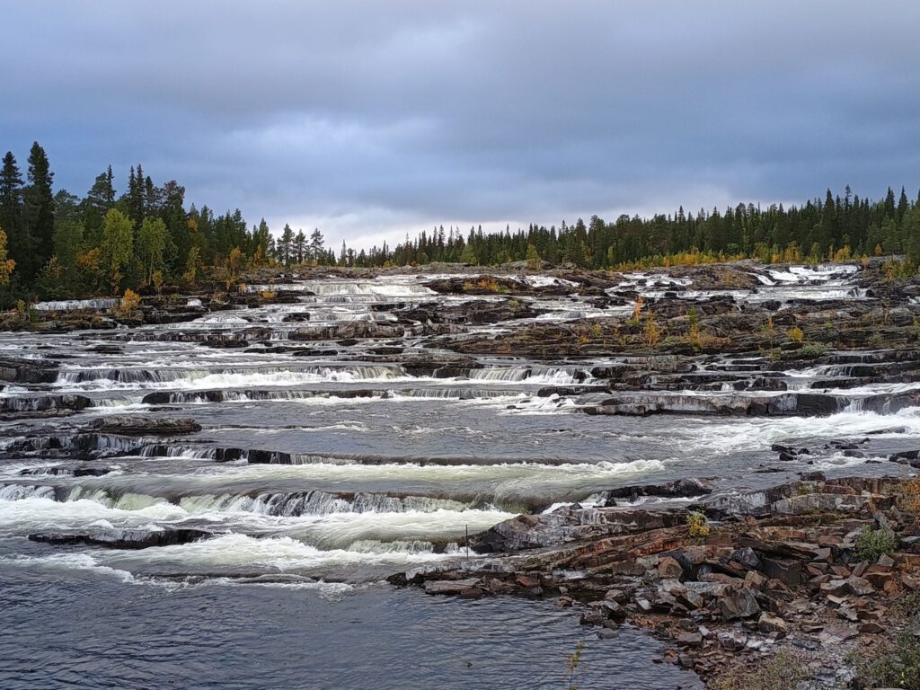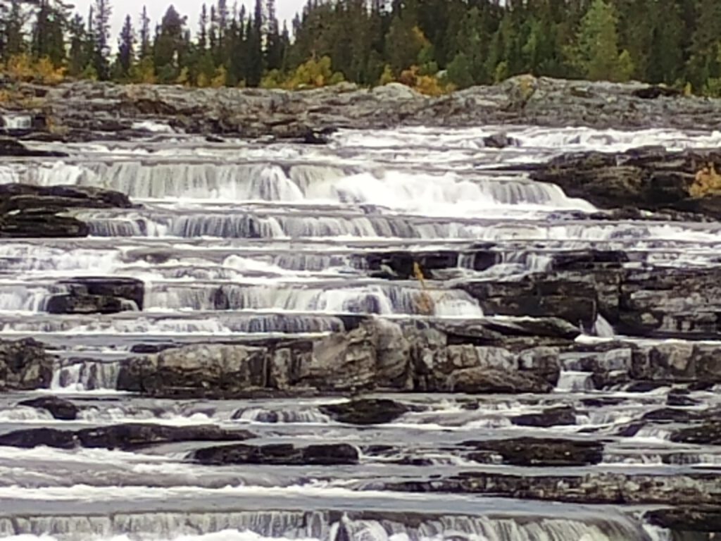 Drukke dag gehad vandaag en toch maar net 120 kilometer gereden. Een paar kilometer vanaf onze overnachtingsplek komen we het eerste highlight al tegen, de Trappstegsforsen, (letterlijk vertaald: trap van watervallen) de waterval bestaat uit verschillende kleine cascades achterelkaar met een hoogteverschil van ongeveer 10 meter. Hoewel de waterval dus niet heel hoog is is hij wel heel breed, daardoor oogt hij heel indrukwekkend.