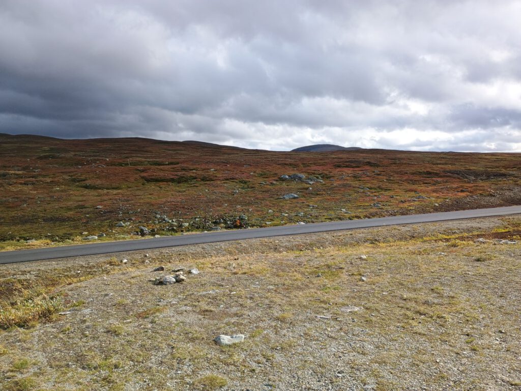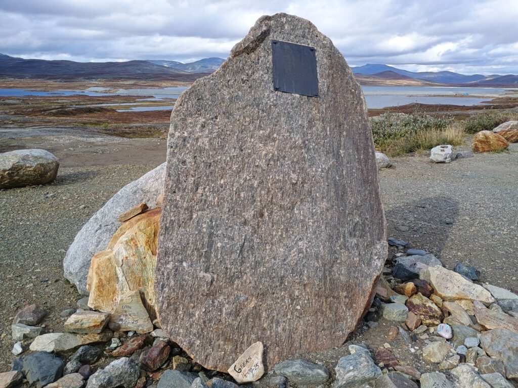 Stop nummer drie is het Stekenjokk plateau. Hier had ik me veel van voorgesteld en het is nog zacht uitgedrukt als ik zeg dat het alle verwachtingen overtroffen heeft. Wat een geweldige plek! Zo uitgestrekt en zoveel verschillende kleuren in het landschap, wat dat betreft is de herfst een mooie tijd om het Stekenjokk plateau te bezoeken. Er staat een grote steen (helaas is niet meer te lezen wat de gedachte achter deze steen is) en daaronder liggen kleine stenen met naam en datum erop van mensen die hier geweest zijn. Daar doen wij natuurlijk ook aan mee, ik haal een stift uit de camper en we schrijven onze naam en de datum op een mooie steen en leggen die er bij.