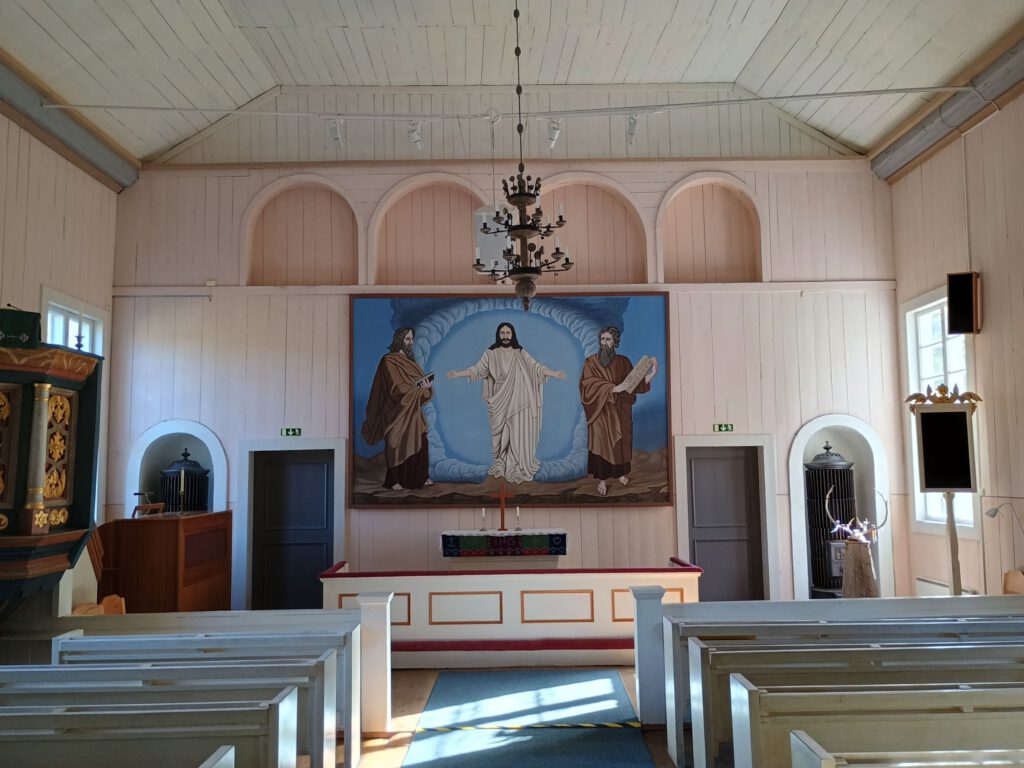 Onze volgende stop is Fatmomakke, Fatmomakke is een Sami kerkdorp Het dorp is bekend om zijn kerk, de omliggende hutten en het unieke culturele erfgoed, waar Sami-bevolking en Zweedse kolonisten al eeuwen samenkomen voor erediensten en markten. In enkele hutten en in de kerk kun je binnenkijken, zo krijg je een redelijk indruk van het leven van de Sami.