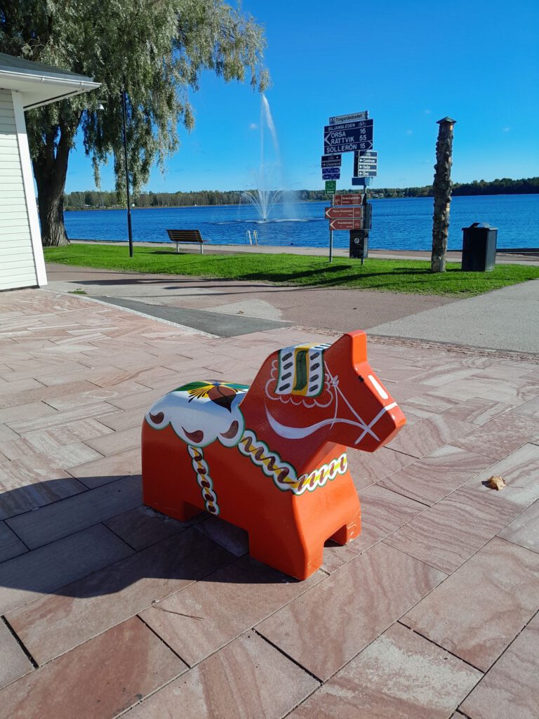 Vanmorgen ontwaakt met een zonnetje en een geweldig uitzicht over de het Åsdammenmeer naast wegnummer 70. Heerlijk met de zon die lekker in de camper scheen ontbeten. Daarna op ons gemak richting Mora gereden. Daar hebben we de camper geparkeerd en zijn even de stad in gelopen. Lekkere verse broodjes gescoord en in de camper gelunched. Daarna zijn we langs de Biltema (grote winkel) gereden waar André een koppelstuk voor de gasflessen heeft gehaald. Hierna de laatste kilometers naar Leksand gereden, het eerste plekje wat ik uitgezocht had vonden we niets, de tweede pasten we niet op gelukkig is driemaal scheepsrecht want de derde was prima. De zon heeft de hele dag geschenen en dat is fijn voor de accu want die blijft op deze manier lekker vol. Morgen gaan we denk ik eerst even in Leksand kijken en dan zien of we ergens LPG kunnen tanken, volgens Google zou dat hier in Leksand kunnen.