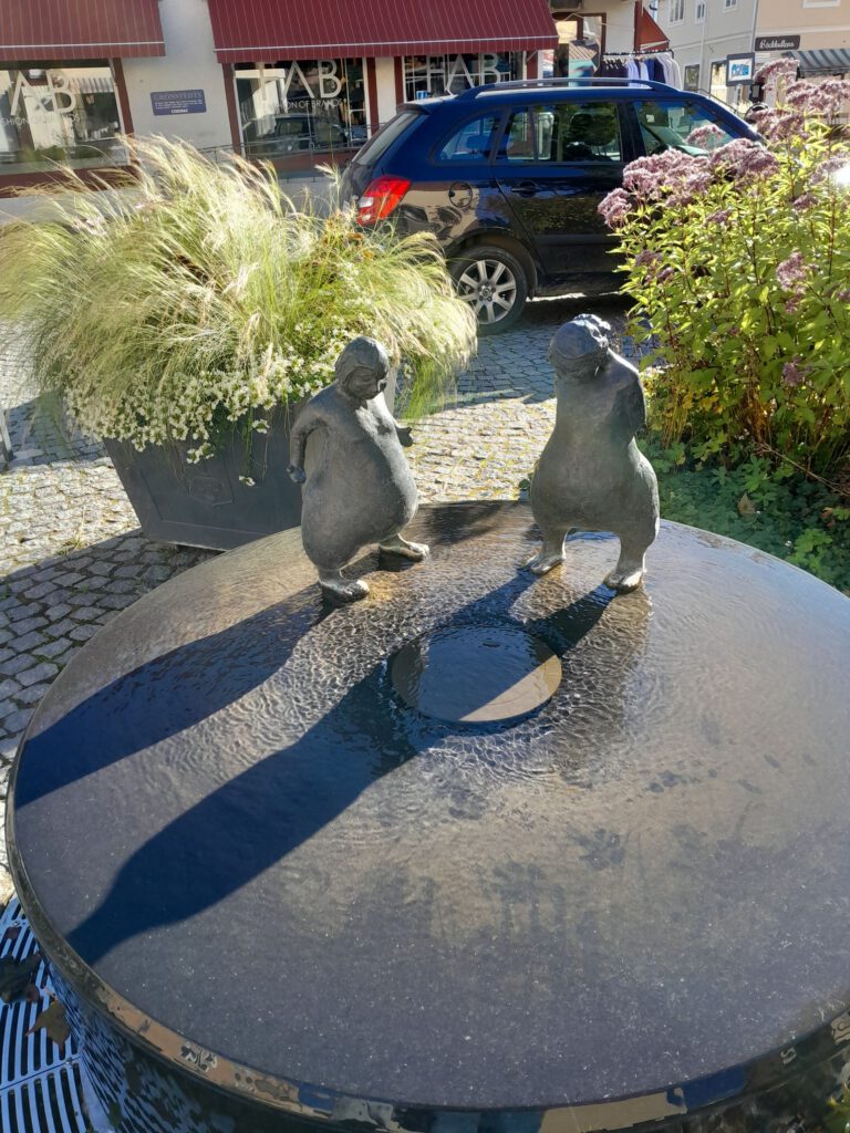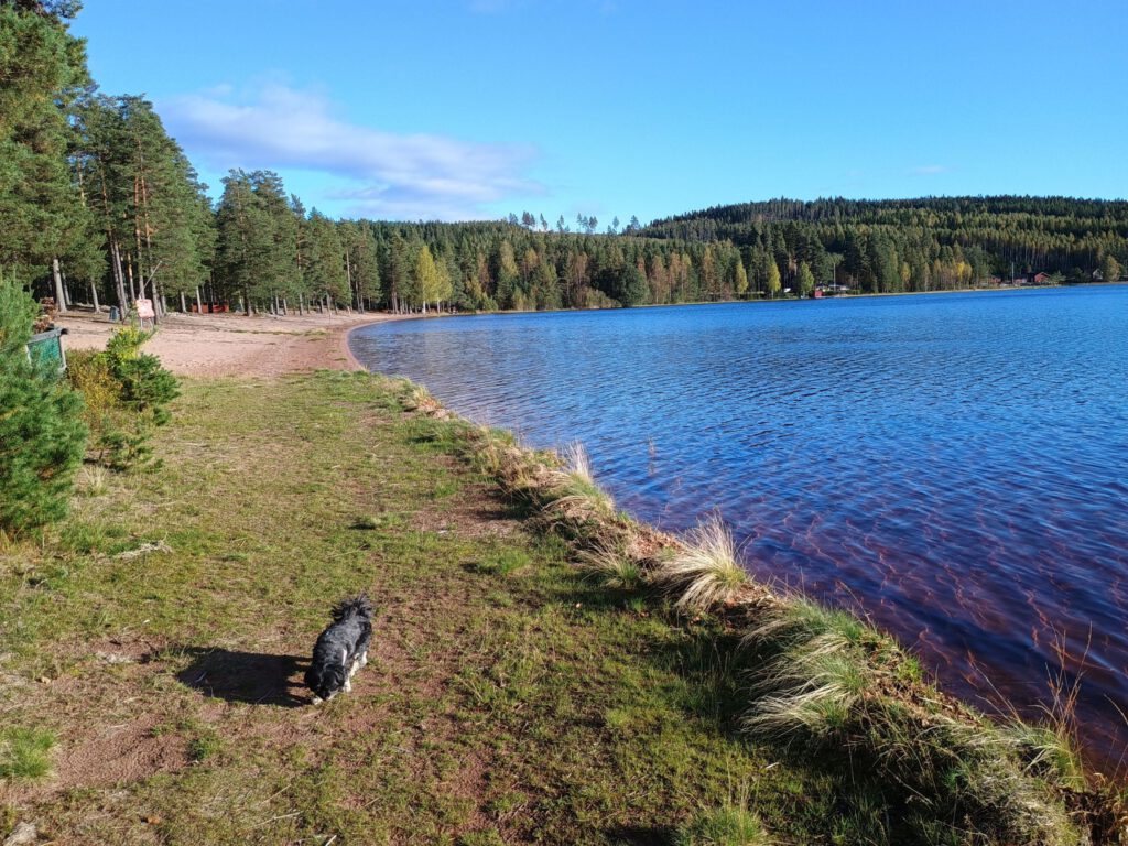 Ik weet eigenlijk niet precies hoe het hier heet, de ene app zegt Gustafs, de andere Solvarbo in ieder geval in de buurt van deze twee plaatsjes aan een meertje. Het weer is heerlijk vandaag, volop zonneschijn heerlijk! Alles beter dan regen en kou natuurlijk. Vanmorgen hebben we een klein wandelingetje gemaakt in Leksand. Niet echt heel spannend, wel een leuk dorp/stad om even doorheen te wandelen. Na het wandelingetje zijn we richting Borlänge gereden, daar wilden we even naar de Lidl en LPG tanken. Vlak bij de Lidl zit een groot winkelcentrum en laat daar nou een Vetenarinärklinik (dierenarts) zitten. Gelijk even naar binnen gelopen en gevraagd of zij Skip haar anaalklieren konden uitknijpen, dat was weer hard nodig want af en toe is de lucht in de camper niet te harden. Gelukkig konden ze Skip gelijk helpen en met een kwartiertje stonden we weer buiten. De kosten? 300 SEK, dat viel reuze mee, bij onze eigen dierenarts betalen we meer. Voor het LPG tanken moesten we een stukje verder rijden en vlak daarbij heb ik een mooie camperplaats gevonden aan een meer. Er stond al een camper toen wij aankwamen en even later kwam er nog een. Staan we eens een keertje niet alleen, ook wel eens leuk. André heeft samen met Skip heerlijk genoten van het zonnetje aan het strandje, al zou je dat aan zijn gezicht niet zeggen…… :-). Als het morgen nog steeds lekker weer is dan blijven we hier misschien wel een dagje staan. We gaan het zien.