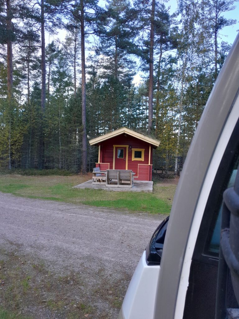 We hebben een paar heerlijke dagen gehad op de camping in Sorsby. Een paar keer de kletsgrage (maar heel aardige) campingeigenaar op bezoek gehad. Gisteravond nog een wandeling in de schemering gemaakt in de hoop toch eindelijk elanden te zien maar helaas. Het begint er nu toch wel om te spannen, nog een paar dagen en dan gaan we Zweden verlaten… Vanmorgen zijn we op tijd naar de Rädastrandscamping gereden om Lotte op te halen. Ze wilde graag nog even naar de Dollar Store in Hagfors om een aardigheidje te halen voor de mensen waar ze het zo fijn mee heeft gehad de afgelopen maanden. Nog even naar de Lidl die ernaast zit voor een paar boodschappen en toen weer terug naar de camping. Daar hadden ze voor Lotte een afscheidslunch georganiseerd, echt leuk voor hoor! Wij waren ook van harte welkom en we hebben heerlijk pizza gegeten. Voor André werd speciaal een broodje frikadel gemaakt omdat hij geen kaas lust. Na de lunch alle spullen uit het huisje van Lotte verplaatst naar de camper, die zit behoorlijk vol nu….. duimen dat we niet aangehouden worden want we zijn nu wel heel zwaar denk ik. Lotte heeft het huisje opgeruimd en schoongemaakt en samen hebben we globaal de route voor de aankomende week bedacht.