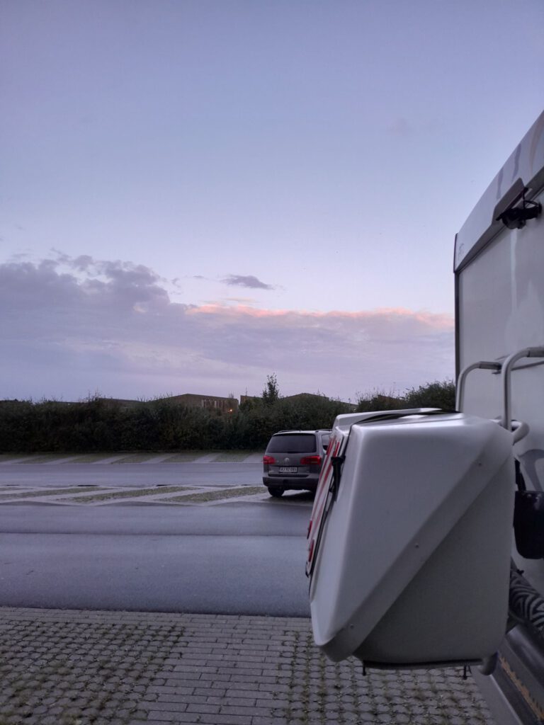 En zo zijn we ineens in Denemarken. Dat hadden we zo niet gepland maar het was verschrikkelijk weer vandaag en er waren berichten dat de Oresundbrug wel eens dicht kon gaan vanwege de storm. We dachten dat het slim zou zijn om die in ieder geval vandaag te passeren zodat we al in Denemarken zijn. Dinsdag wil Lotte graag het Frøslev Gevangenen Kamp (Frøslevlejrens) bezoeken (maandag is het helaas gesloten) en dat is vanuit Malmö nog best een eindje rijden. Als de brug morgen dicht is dan zouden we die afstand in een dag moeten rijden en dat vinden we wel heel veel.