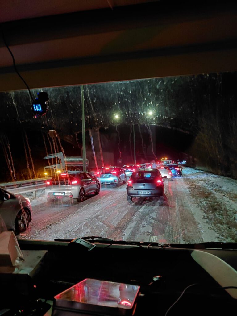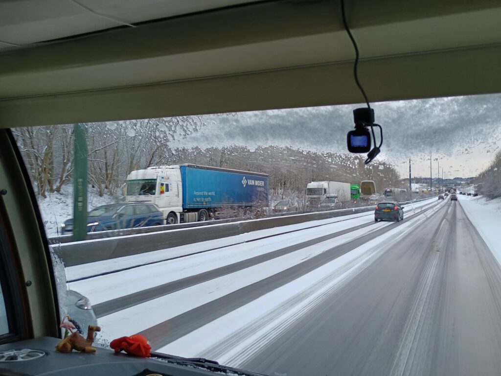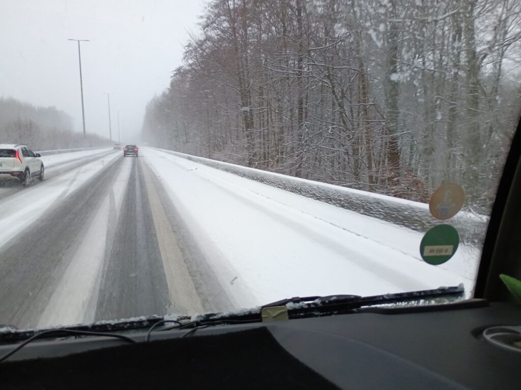 Vanmorgen rond 10.00 uur vertrokken, in de sneeuw. Gelukkig was het eenmaal op de A12 goed te doen. In Limburg was er bijna geen sneeuw maar een eind in België werd het weer steeds slechter. Flinke sneeuwbuien en ijs op de weg. Net voor Frankrijk was het klaar, file om een heuvel op te komen, auto tegen de vangrail en niemand kon meer voor of achteruit, na zeker een uur kwamen er mondjesmaat weer auto’s voorbij en durfden wij het ook weer aan. We reden net toen ze voor ons een auto op onze helft duwden, daar moesten we voor stoppen en toen was het klaar, we kwamen niet meer op gang. Gelukkig de camper achteruit aan de kant kunnen laten rollen. Na een paar uur kwam de politie even polshoogte nemen maar die konden ook niets doen. We waren bang dat het een hele lange avond/nacht zou worden maar dat viel gelukkig mee. Nadat we zeker drie uur stil hadden gestaan kwamen er ineens om de vijf minuten strooiwagens langs. Na iedere strooiwagen een hele rij auto’s en na een half uurtje durfden wij het ook weer aan. Een beetje glibberen en glijden naar de gestrooide weghelft maar toen reden we gelukkig. Even nog een schrik toen we net de grens met Frankrijk waren gepasseerd want daar was niet gestrooid. Na een paar kilometer was de weg ineens schoon en was er geen sneeuw meer te bekennen. Hoezo precies op de grens gestopt die sneeuwbuien. Snel in P4N een camperplaatsje gezocht en dat vonden we in Lumes. Al met al een lange vermoeiende dag maar gelukkig zonder ongelukken.