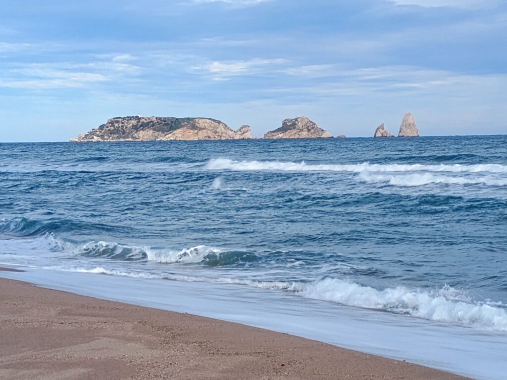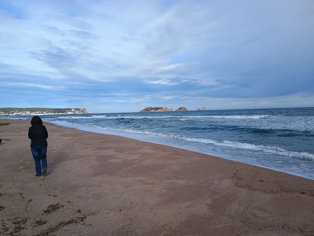 Omdat we na een paar dagen rijden wel een middagje rust verdiend hebben rijden we vandaag niet heel ver, ik heb een camperplaats gevonden aan zee in Torroella de Montgri, niet echt charmant we staan gewoon op een parkeerplaatsje met nog een paar andere campers maar voor vandaag helemaal goed. Na de lunch maken we een flinke strandwandeling, er staat hier een stuk minder wind dan net over de grens waar we even getankt en geloosd hebben, dat maakt de temperatuur een stukje aangenamer. Helaas is hier de zon ook niet te zien maar we houden hoop op beter weer.
