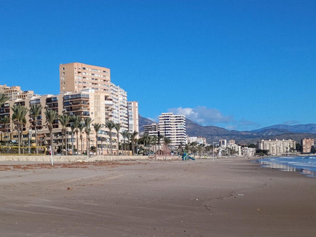 We zijn nog een extra dag op Camperlive in Finestrat gebleven. Het zou gaan stormen en die storm zou woensdag in de loop van de dag in kracht afnemen. Omdat we het niet zo zien zitten om te rijden als het stormt hebben we ons vertrek dus nog een dag uitgesteld. Jammer dat die hele storm niet is komen opdagen, tenminste…. die storm begon ineens gisteravond/vannacht toch een beetje op te steken. Vanmorgen dus toch nog met een flinke wind vertrokken maar alles is gelukkig goed gegaan, we hoefden ook maar zo’n 30 kilometer te rijden dus dat viel erg mee. De zon schijnt volop maar helaas is de temperatuur nog niet echt om over naar huis te schrijven. André maakt een wandelingetje naar het strand met Skip, ik sla even over en ga lekker aan een bakkie koffie. Verder maken we er een rustig dagje van.